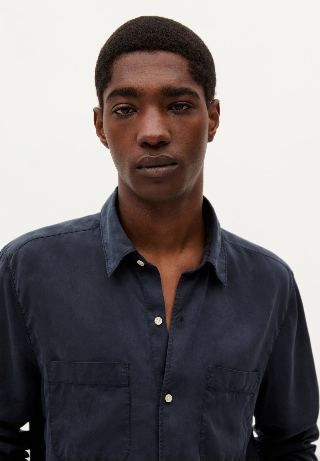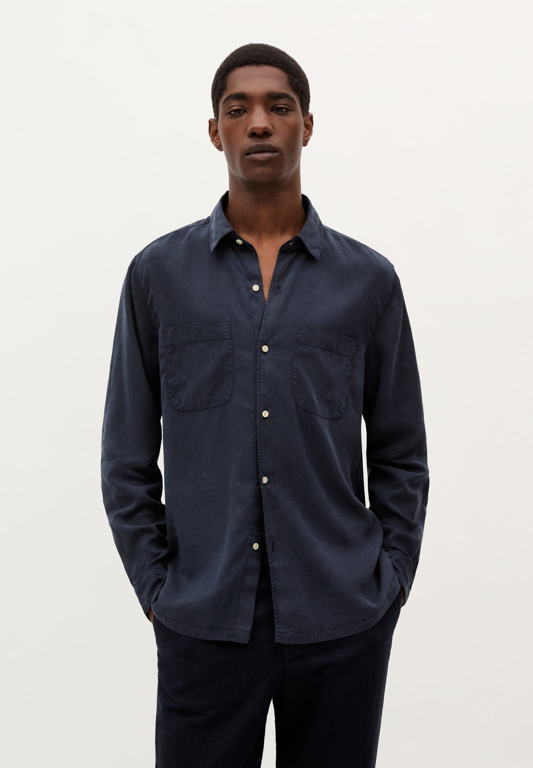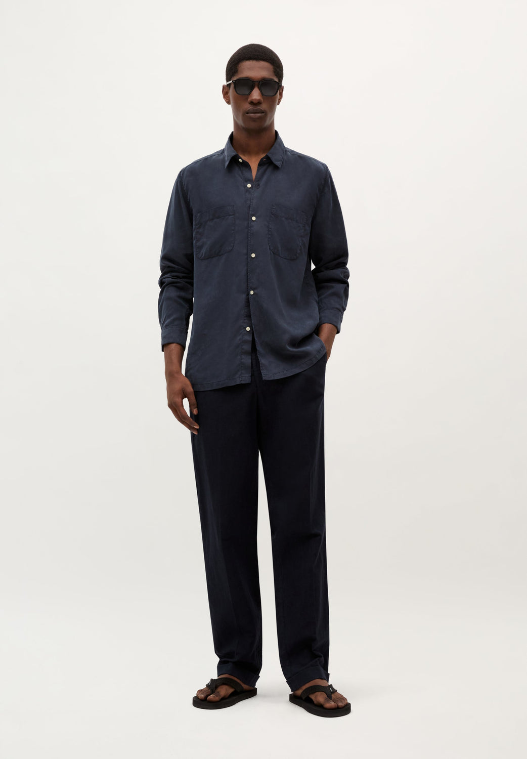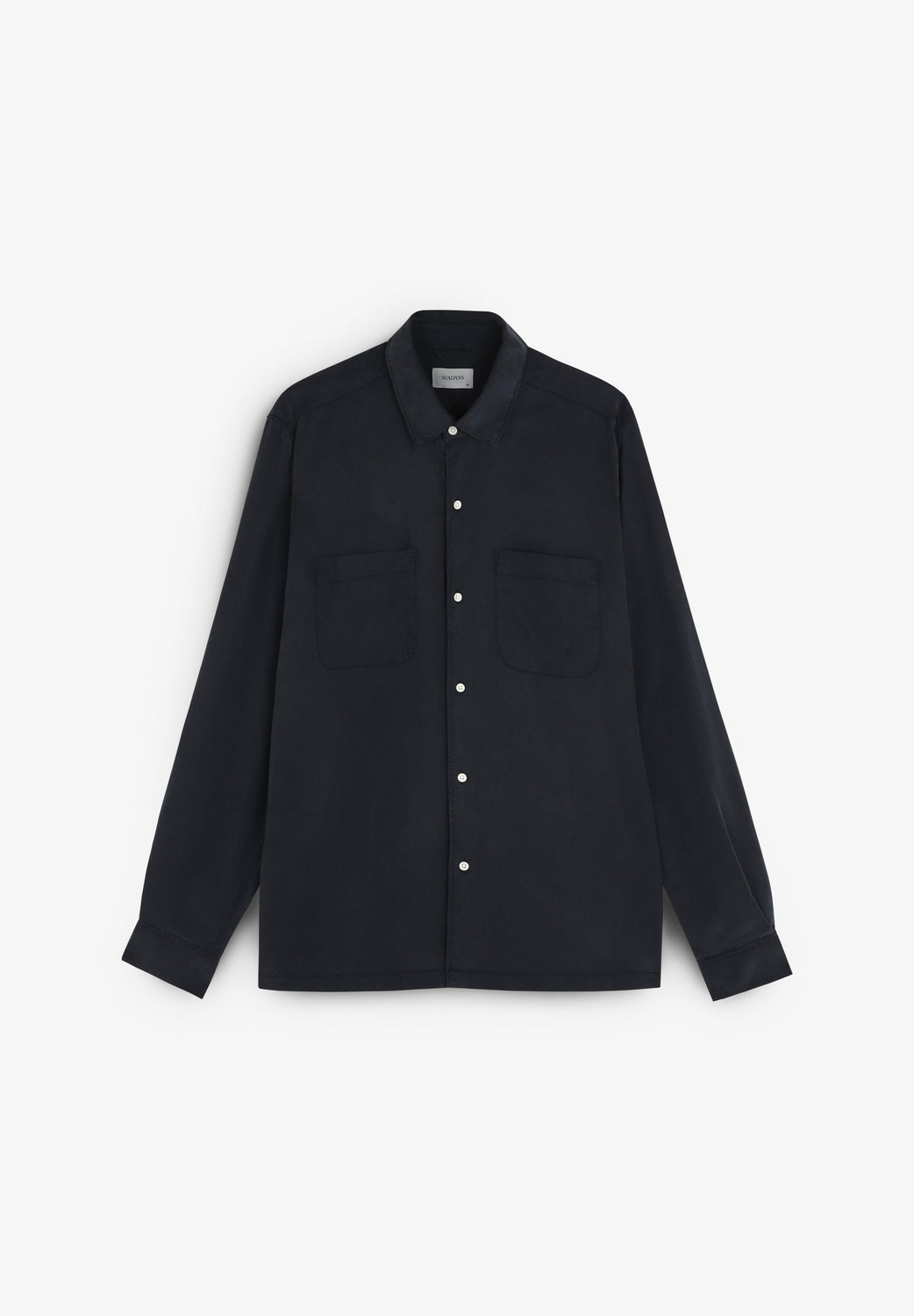 Camisa confeccionada en Lino. Manga larga. Dos bolsillos en parte frontal. Puños ajustables por botones. Cierre mediante abotonadura frontal.