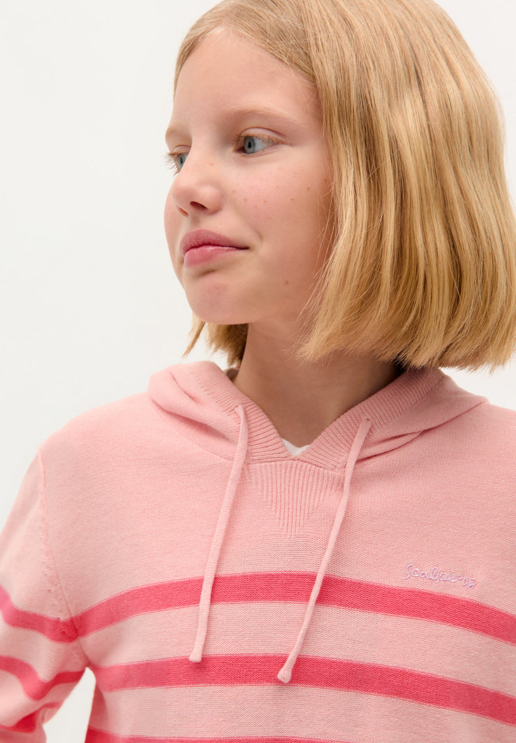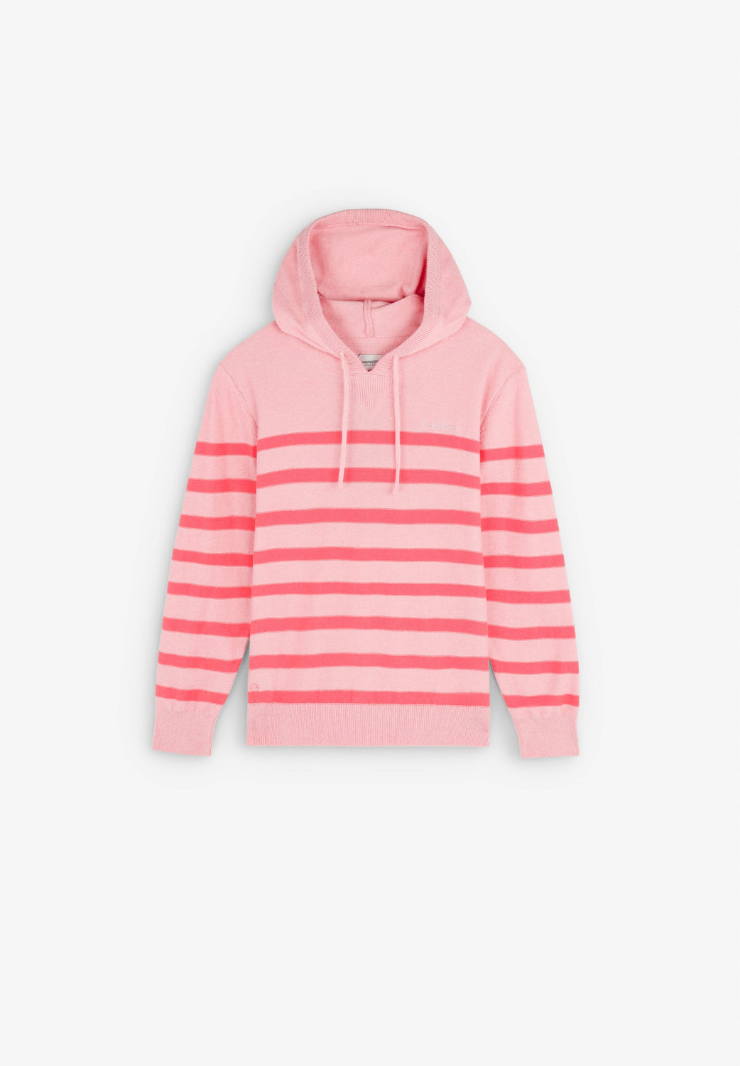 Sudaderas de punto confeccionadas en 100% Algodón de BCI. Abertura lateral en bajos con detalle de raya a contraste, capucha ajustable y detalle chapa logo en bajo inferior derecha.