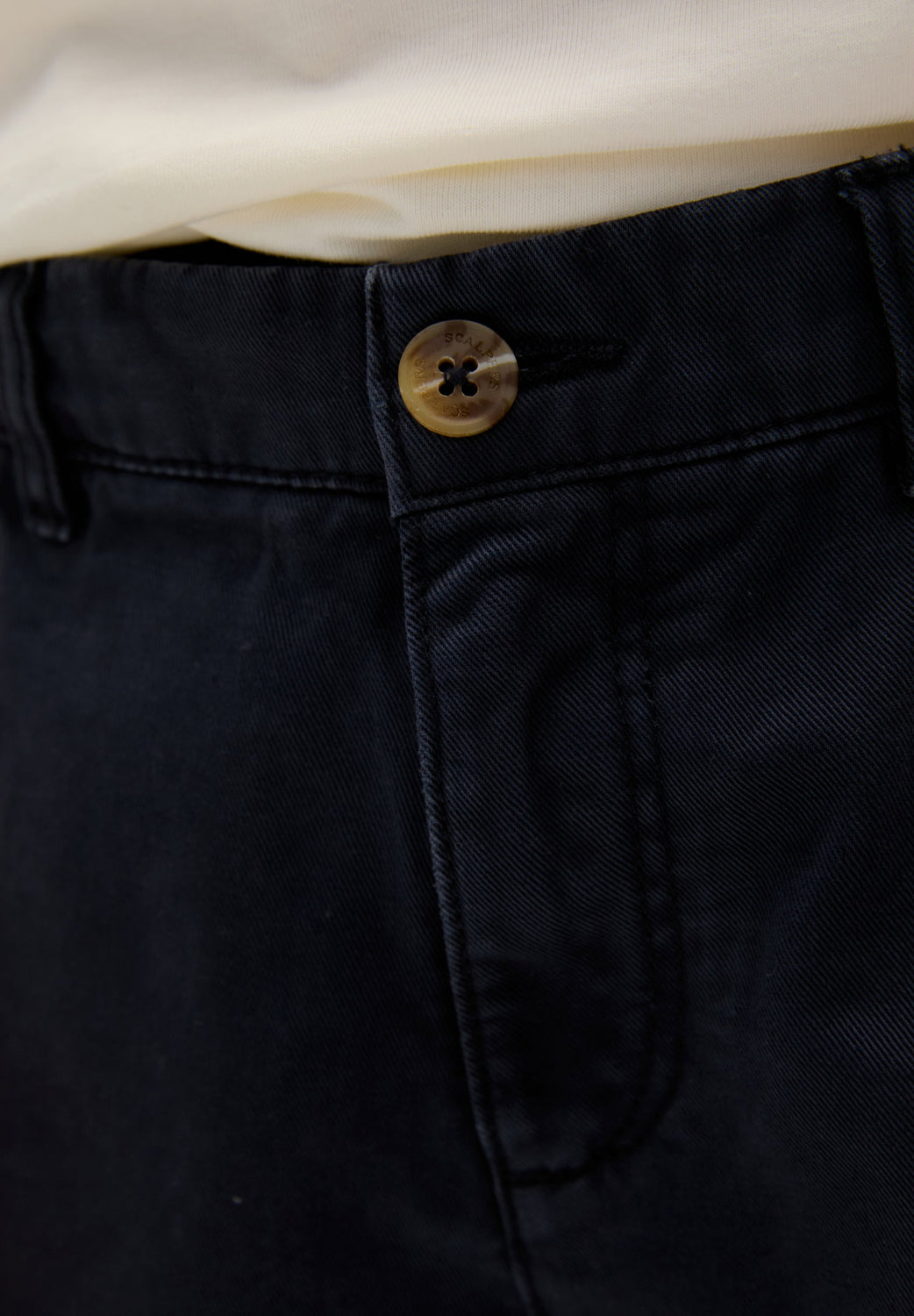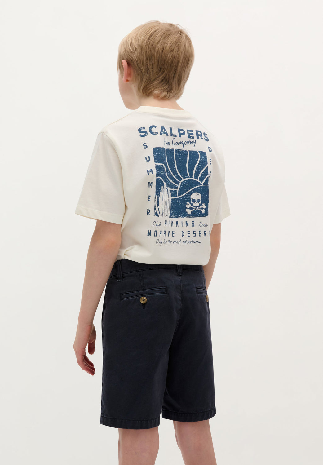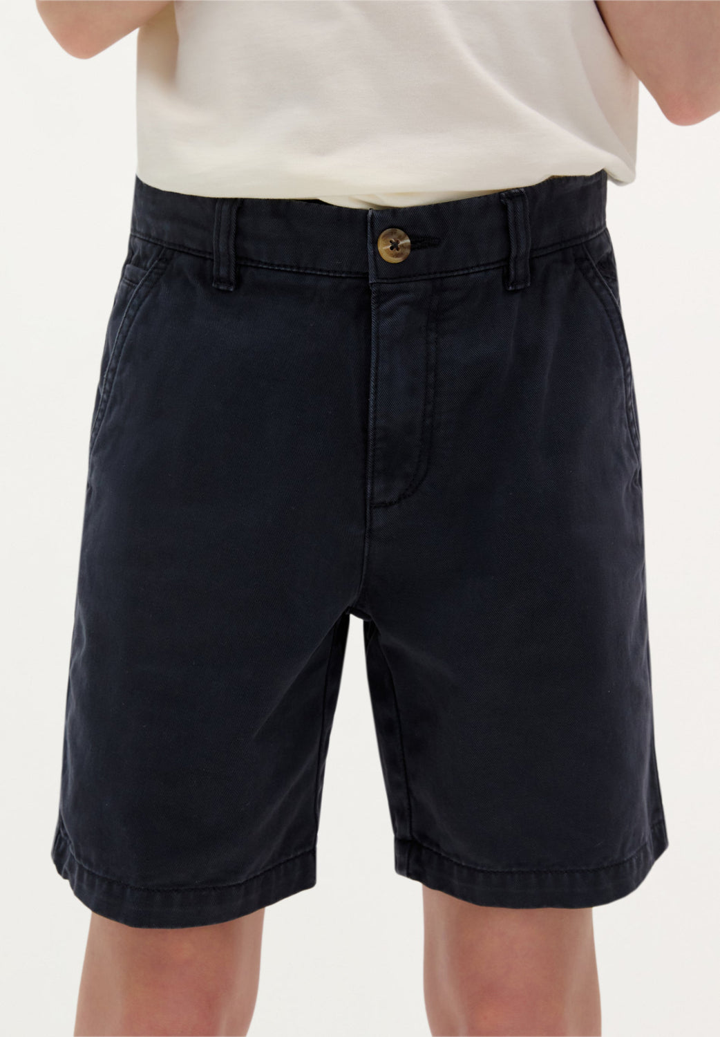 Bermudas confeccionadas en 100% algodón orgánico. Cierre frontal mediante botón y cremallera. Trabillas en cintura. Dos bolsillos delanteros y dos traseros con cierre mediante botón. Detalle de etiqueta con logo.