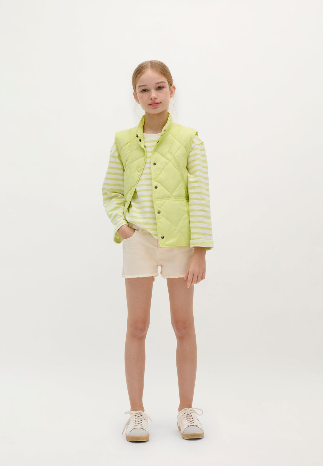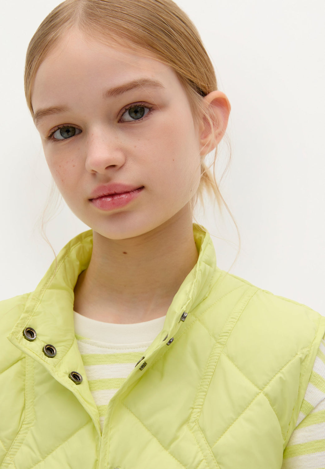 Chaleco acolchado confeccionado en tejido de poliéster. Regular fit, con cierre de botones. Aberturas laterales, bolsillos delanteros imantados. Detalle de parche engomado en la espalda.
