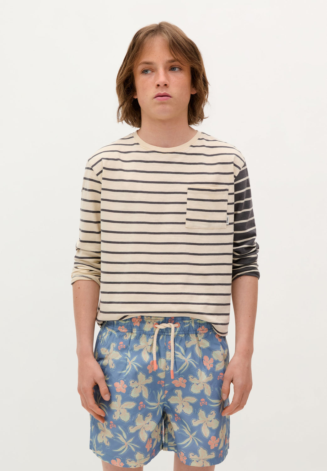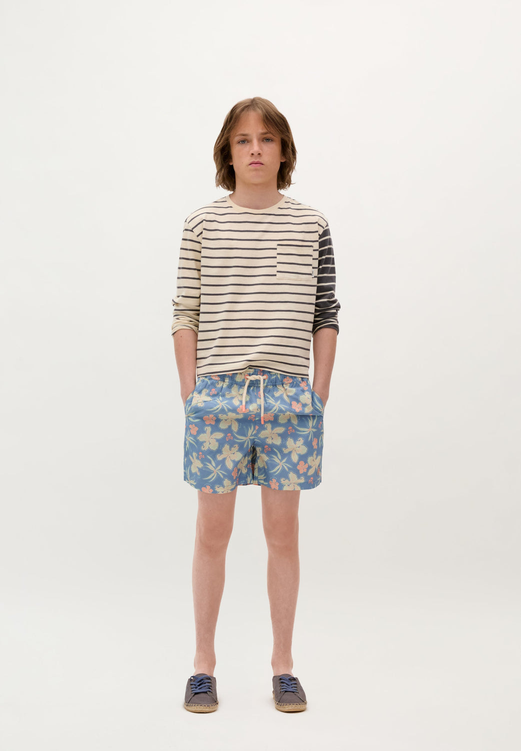 Bañador con cinturilla elástica y cordones ajustables frontal. Bolsillo con detalle vivo en espalda.