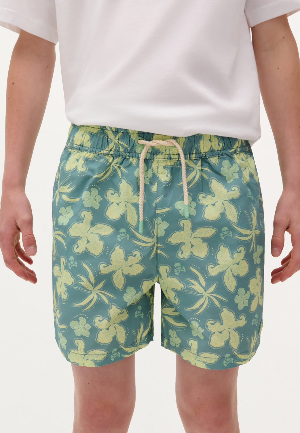 Bañador con cinturilla elástica y cordones ajustables frontal. Bolsillo con detalle vivo en espalda.
