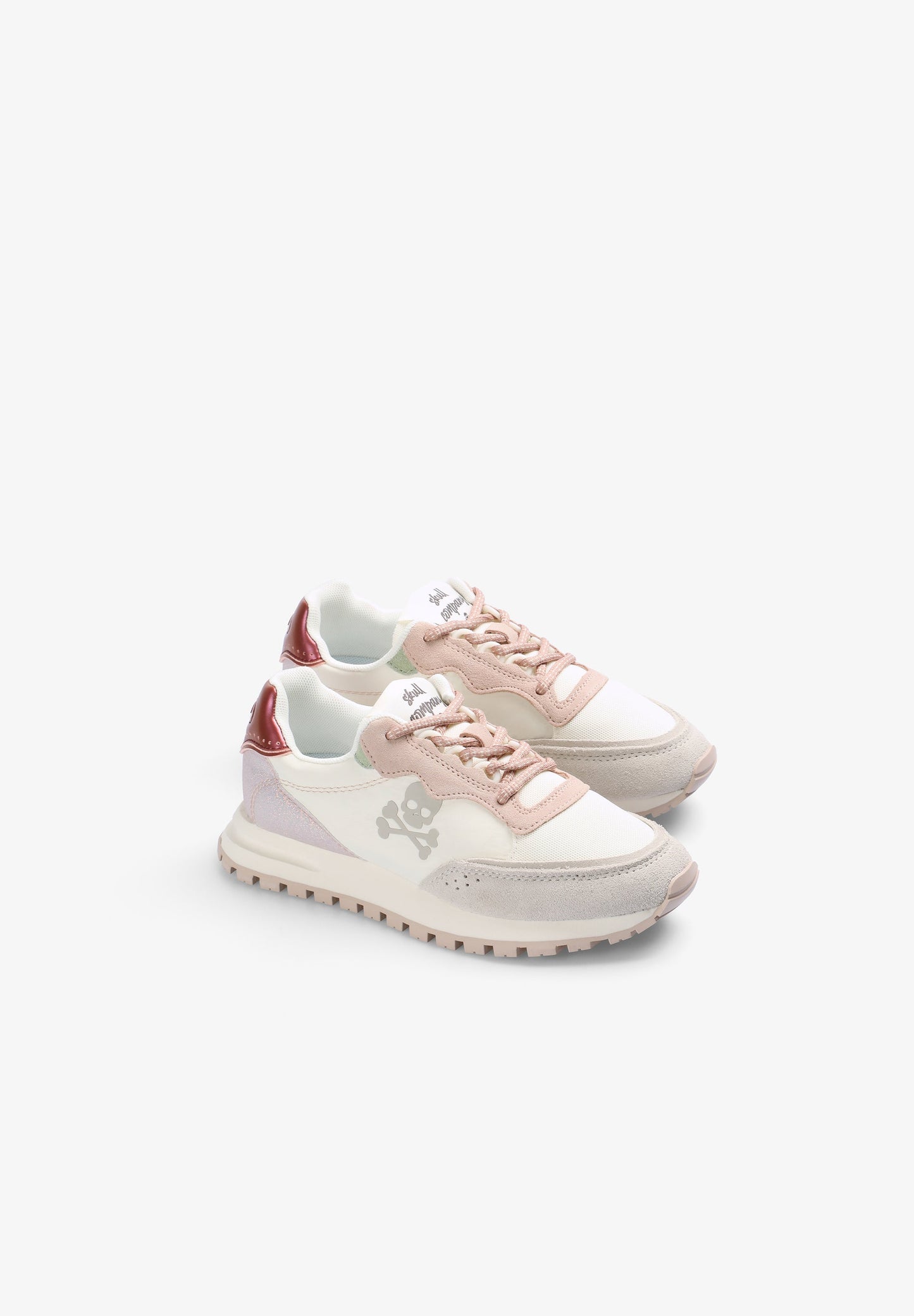 Sneakers confeccionada en nylon con detalles en serraje. Cierre con cordones, suela de goma pronunciada dentada y malla en la parte delantera. Calavera lateral y etiqueta personalizada.