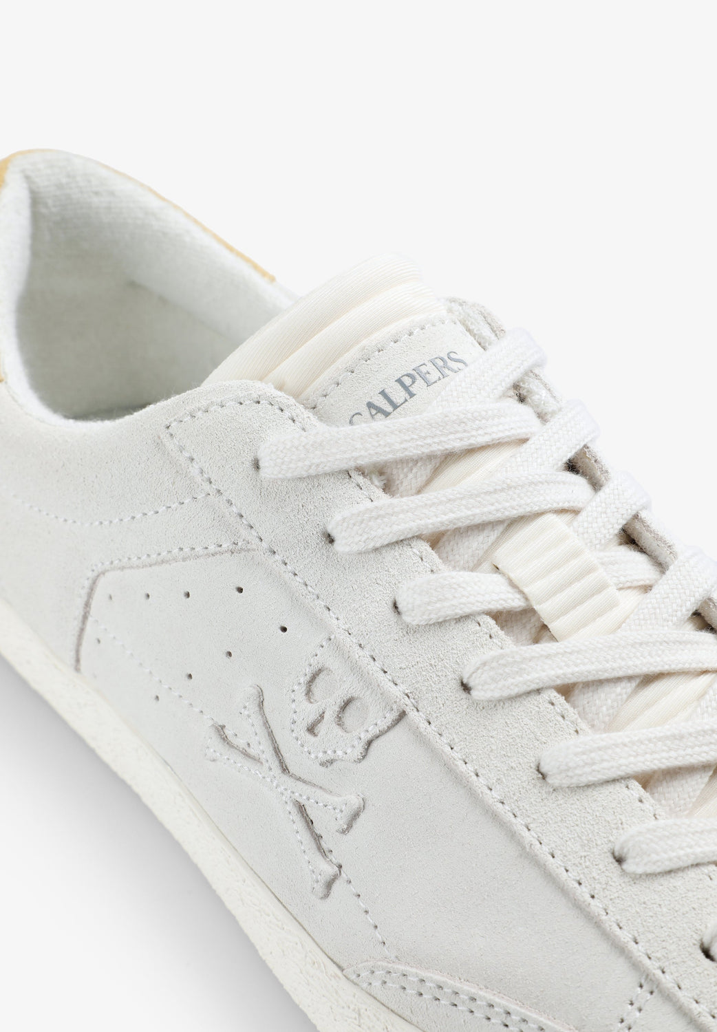 Sneakers bajas con calavera lateral a contraste. Confeccionadas en ante y piel de napa. Cierre con cordones. Suela de goma. Detalle en talón a contraste.