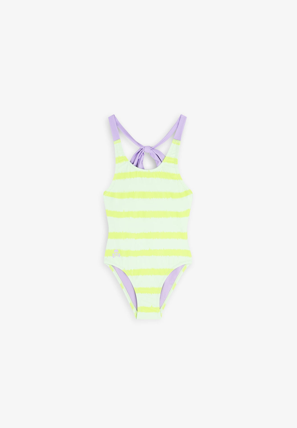 Bañador con cuello redondo y tirantes. Detalle vivos con color a contraste.