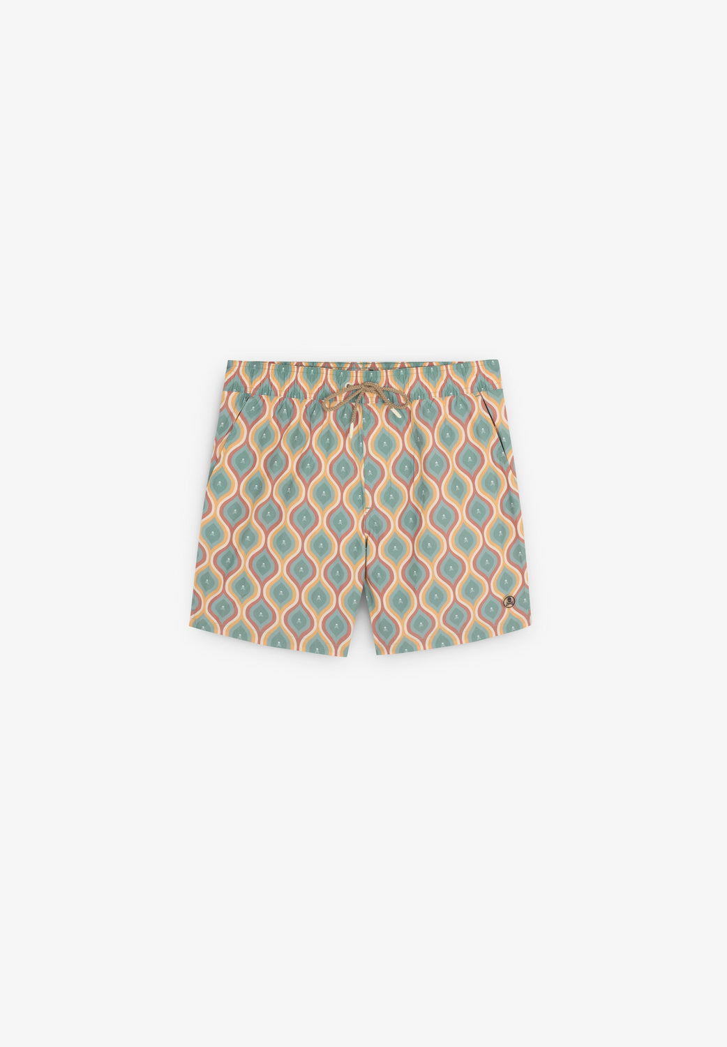 Bañador confeccionado en tejido técnico. Cintura elástica ajustable con cordón. Bolsillos laterales y detalle de bolsillo trasero de plastrón. Forro interior.