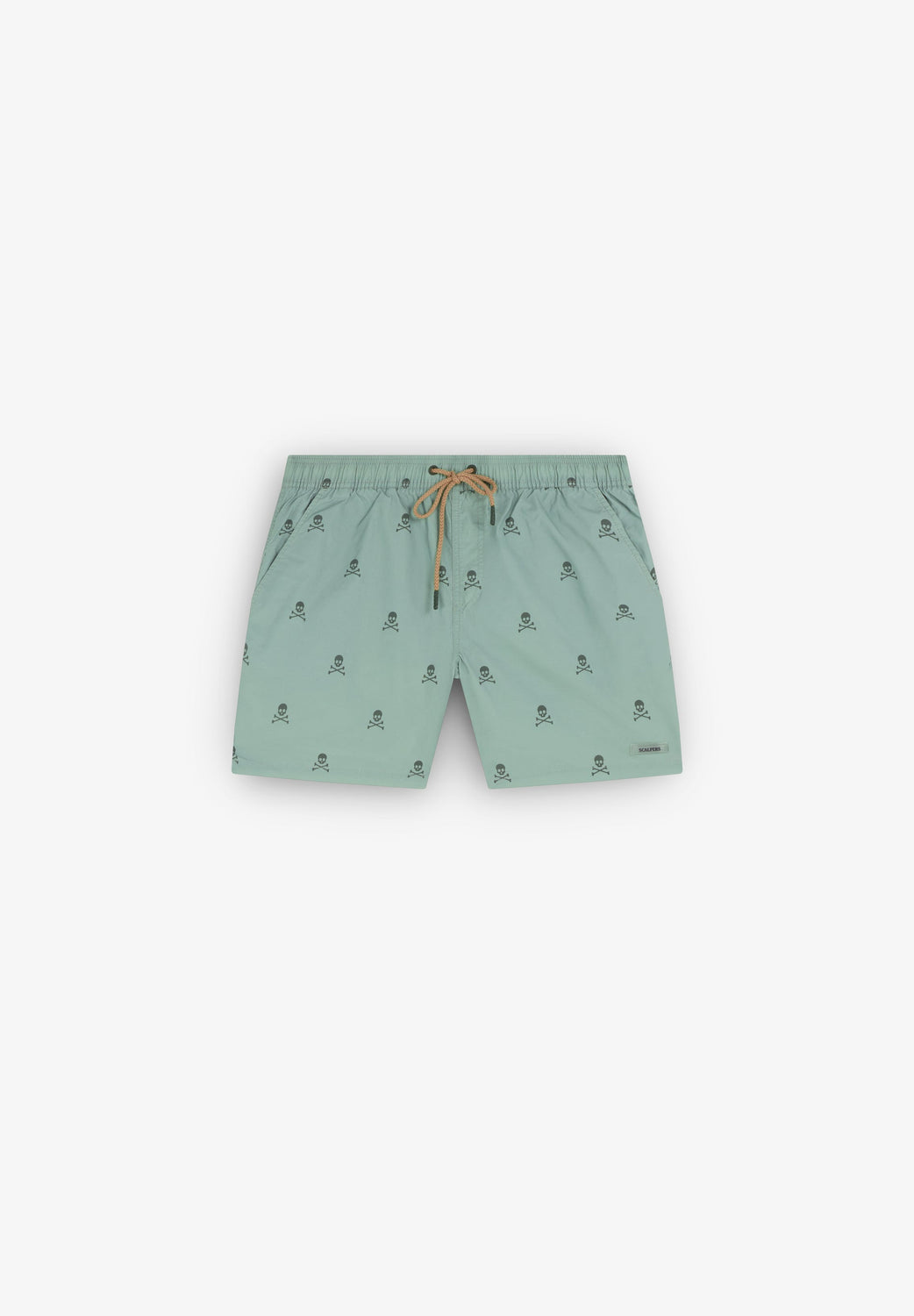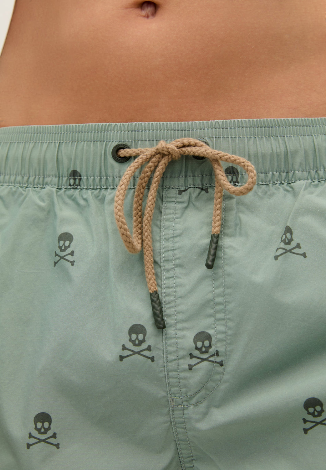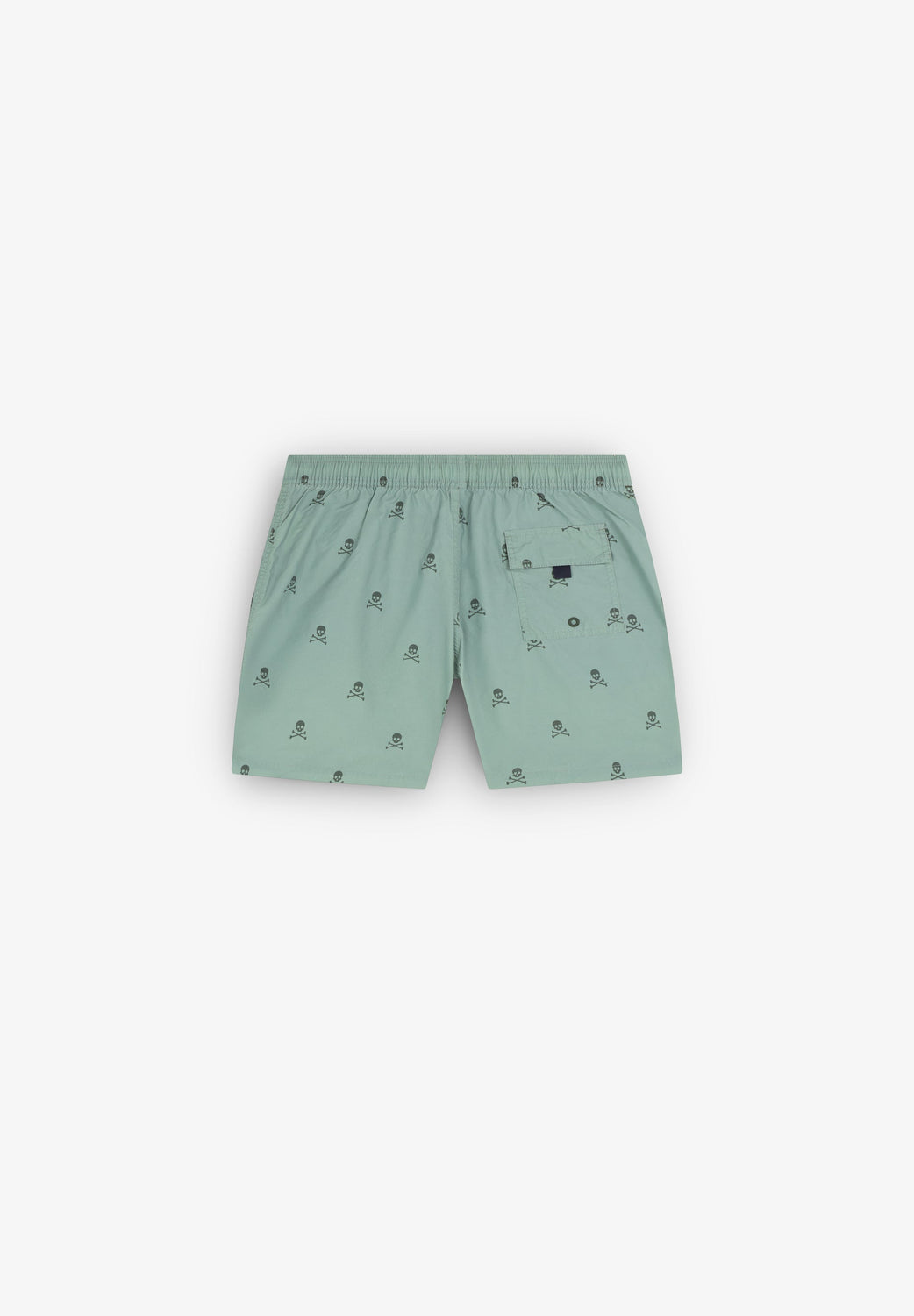 Bañador confeccionado en Algodón y Nailon. Cintura elástica ajustable con cordón. Diseño de monograma impreso con acabado mate. Rejilla interior. Bolsillos laterales y trasero con cierre por velcro. Detalle de logo engomado en frontal izquierdo.