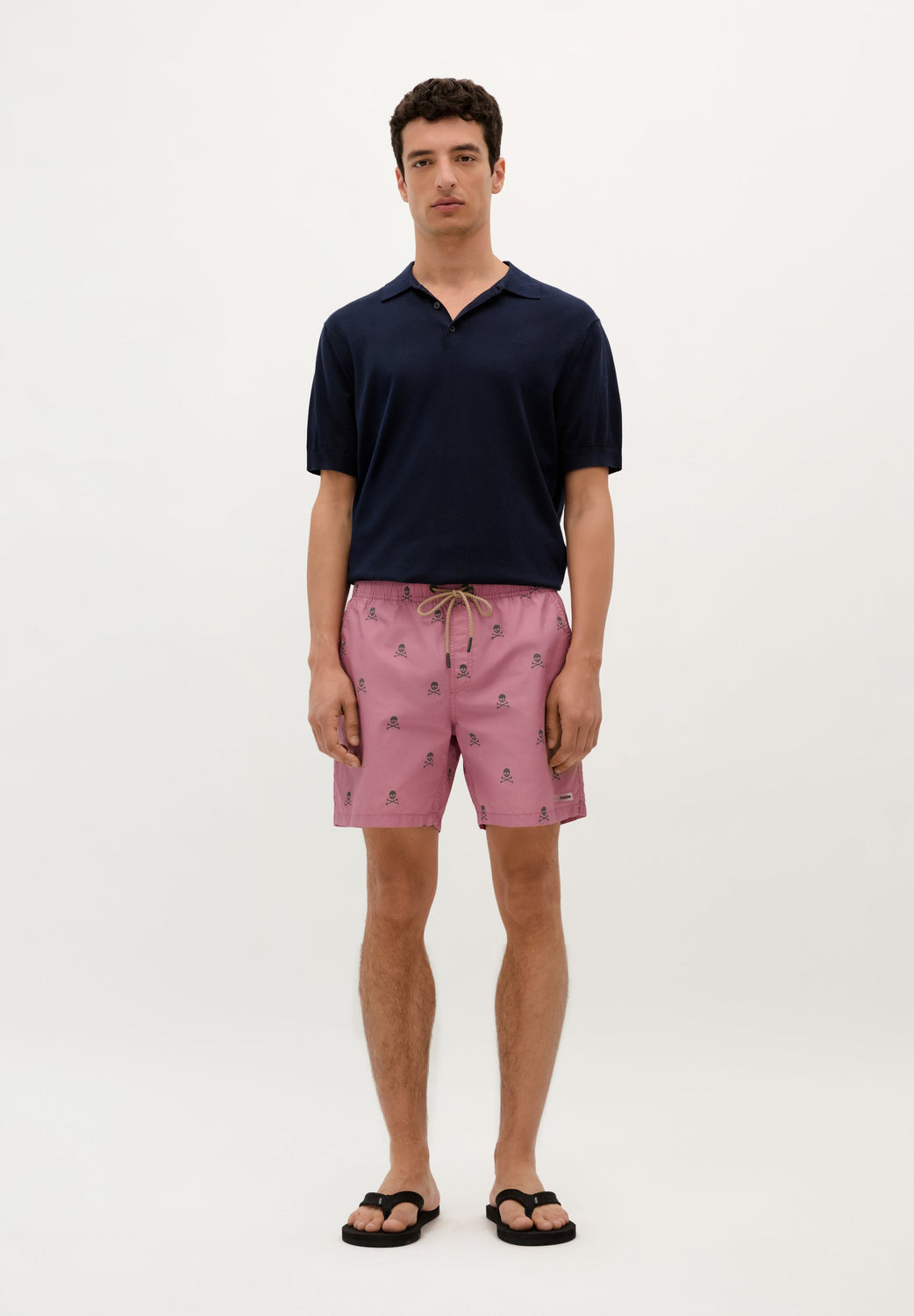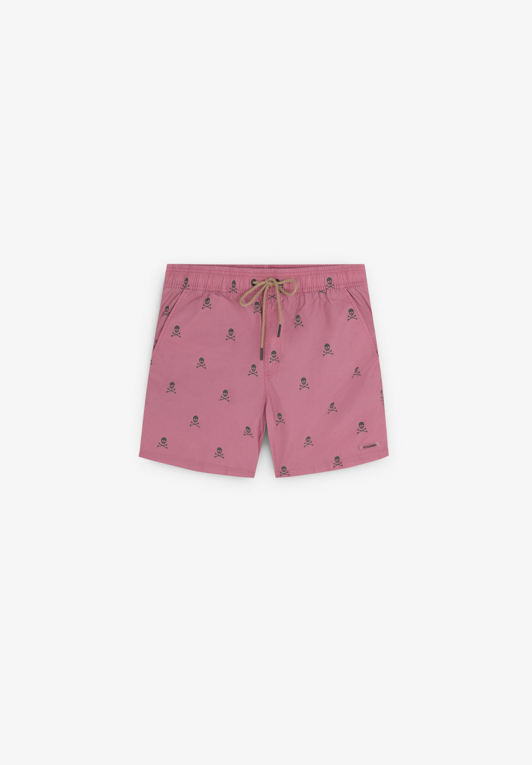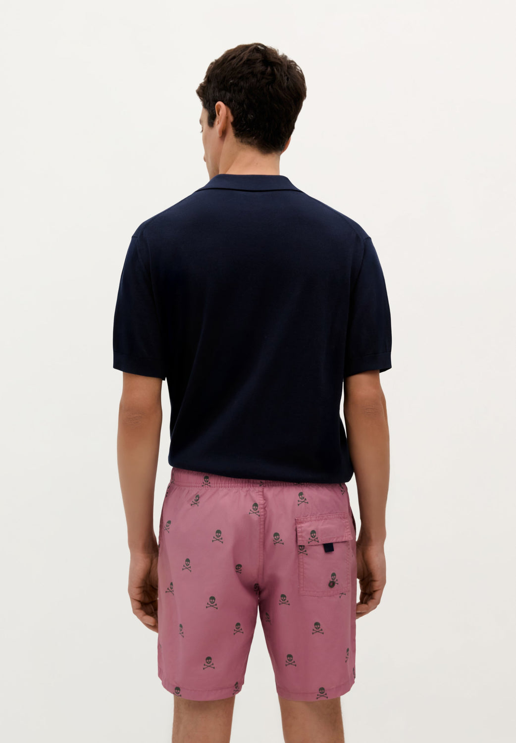 Bañador confeccionado en Algodón y Nailon. Cintura elástica ajustable con cordón. Diseño de monograma impreso con acabado mate. Rejilla interior. Bolsillos laterales y trasero con cierre por velcro. Detalle de logo engomado en frontal izquierdo.