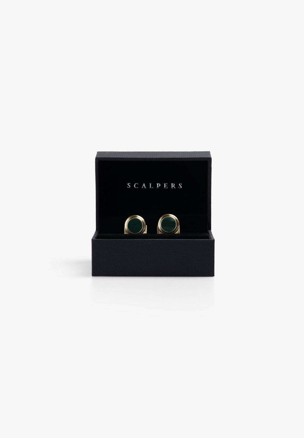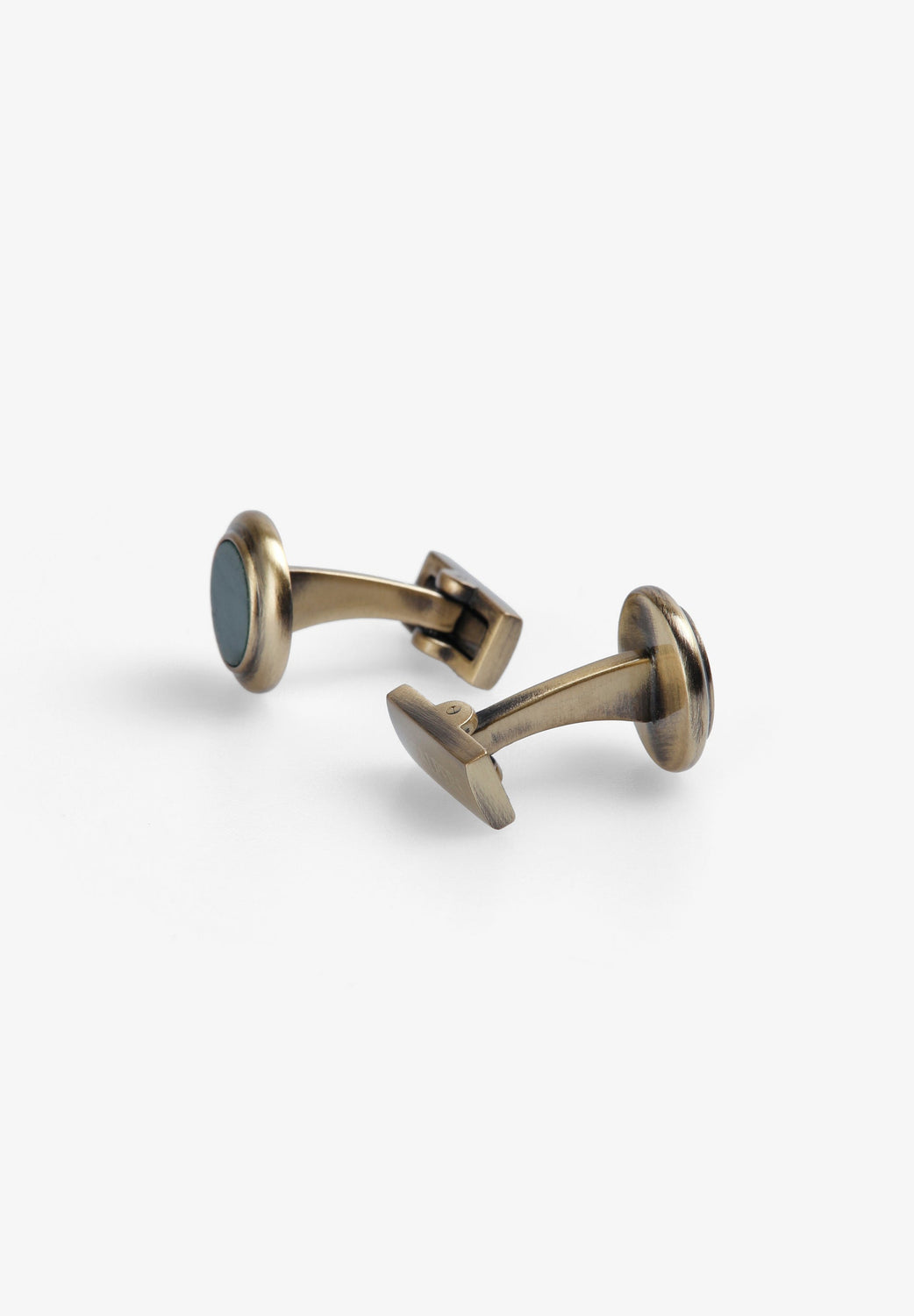Gemelos confeccionados en latón y piedra. Detalle de logo.
