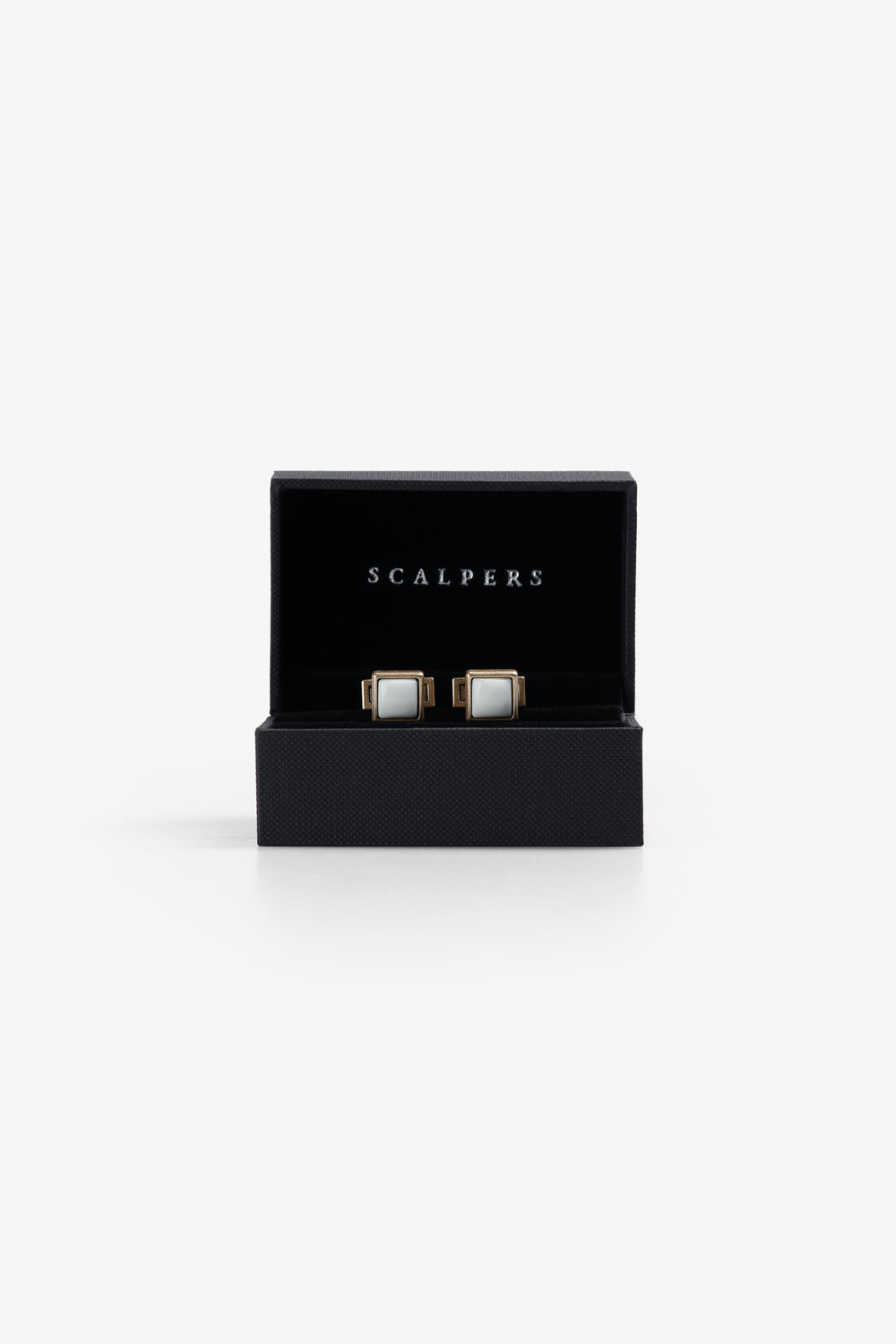 GEMELOS CUADRADOS LATÓN Y PIEDRA