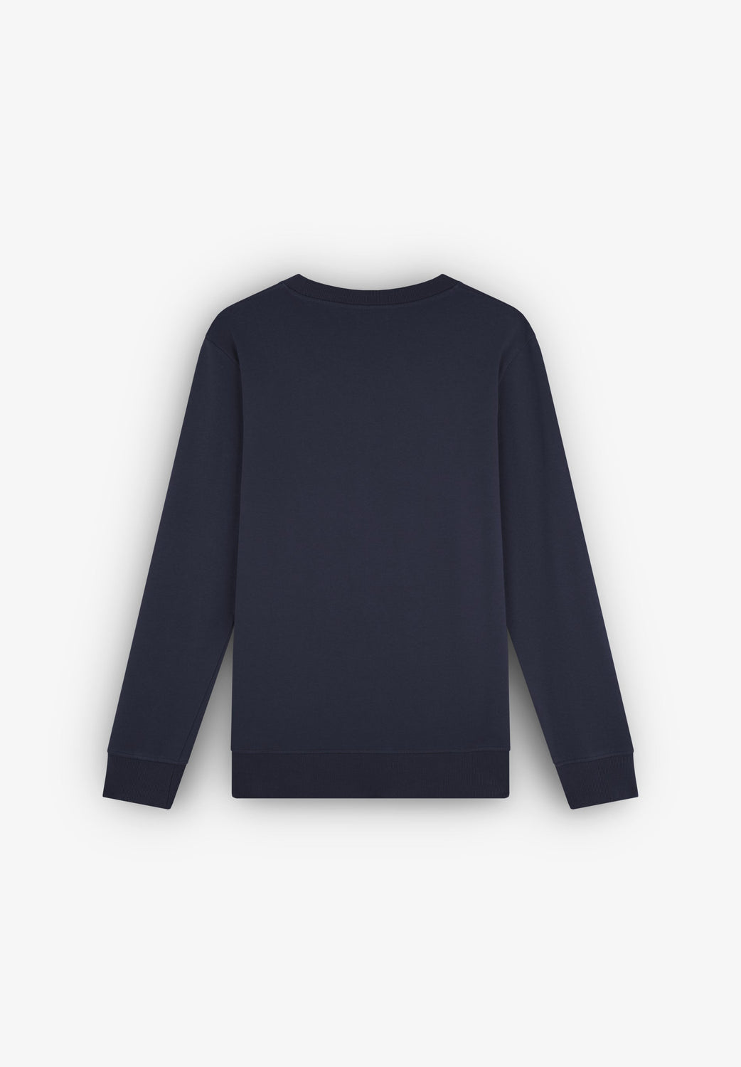 Sudadera confeccionada en 100% algodón BCI. Corte Regular Fit, cuello redondo con rib y manga larga con puños acabados en rib. Logo frontal en pecho con relieve.