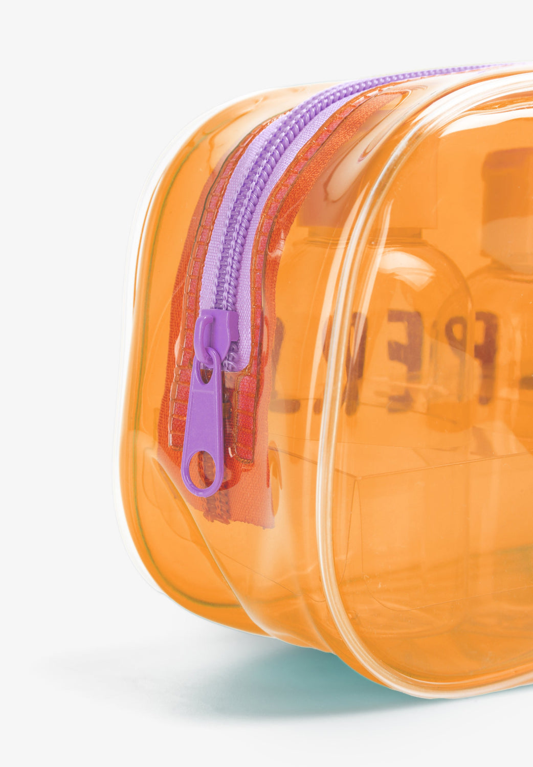 Neceser translúcido. Monograma y logotipo en laterales. Cierre por cremallera.