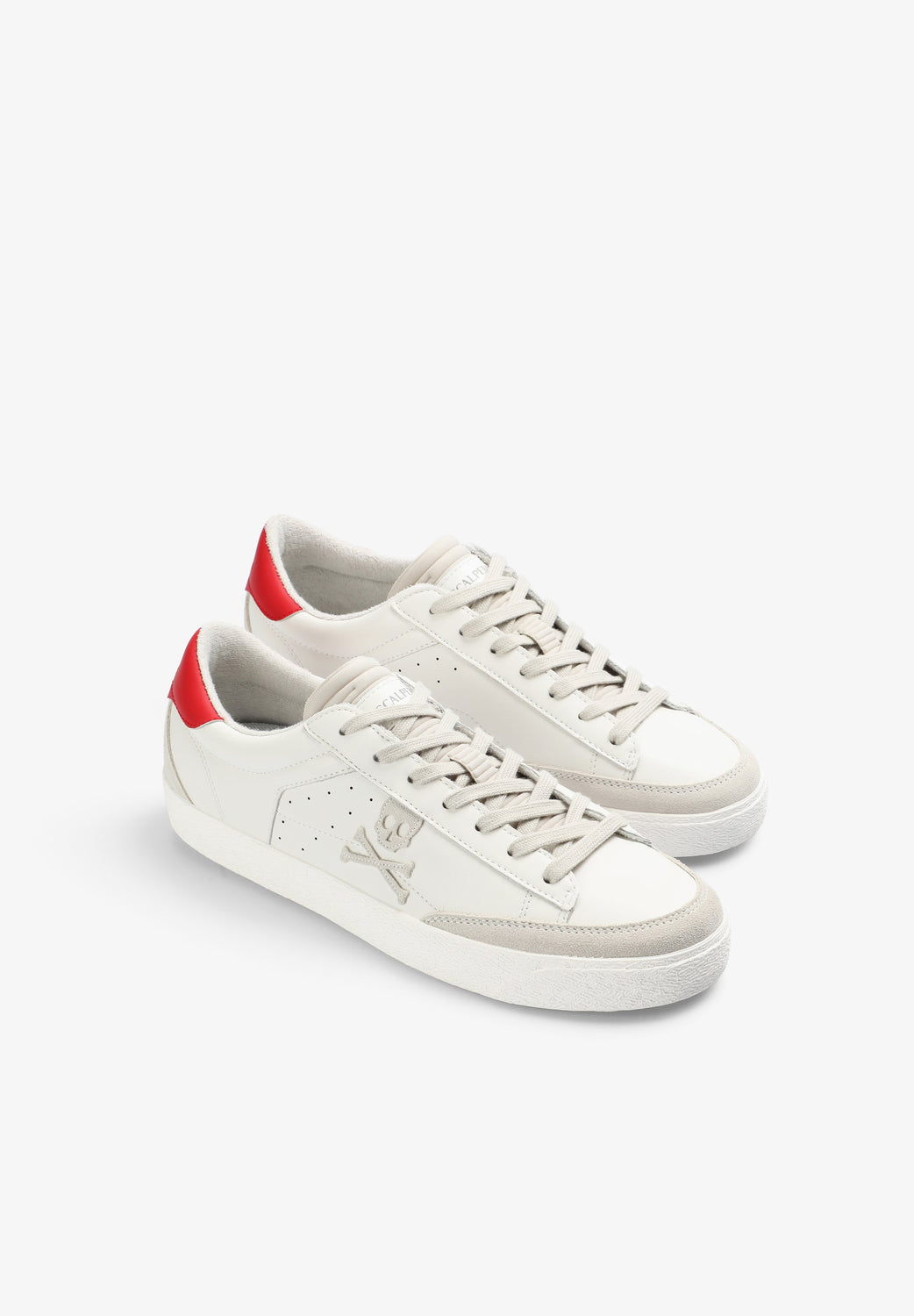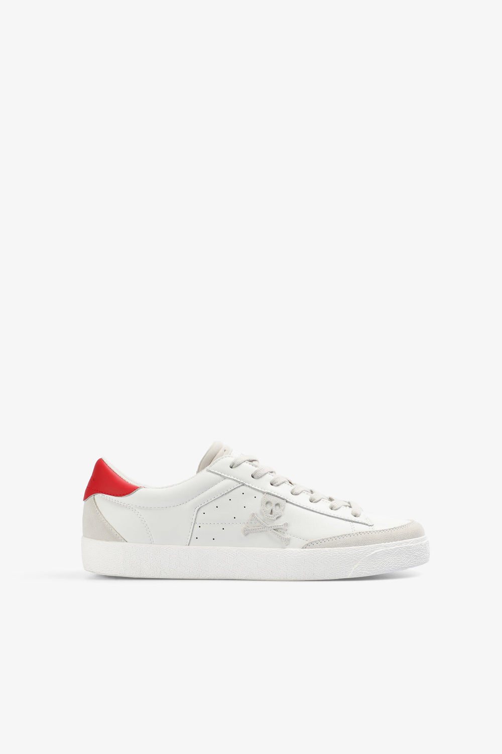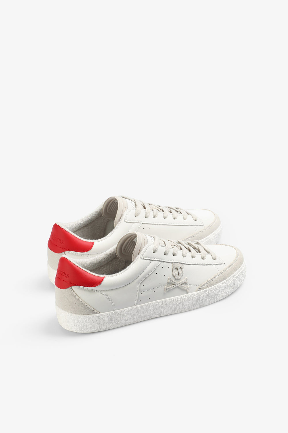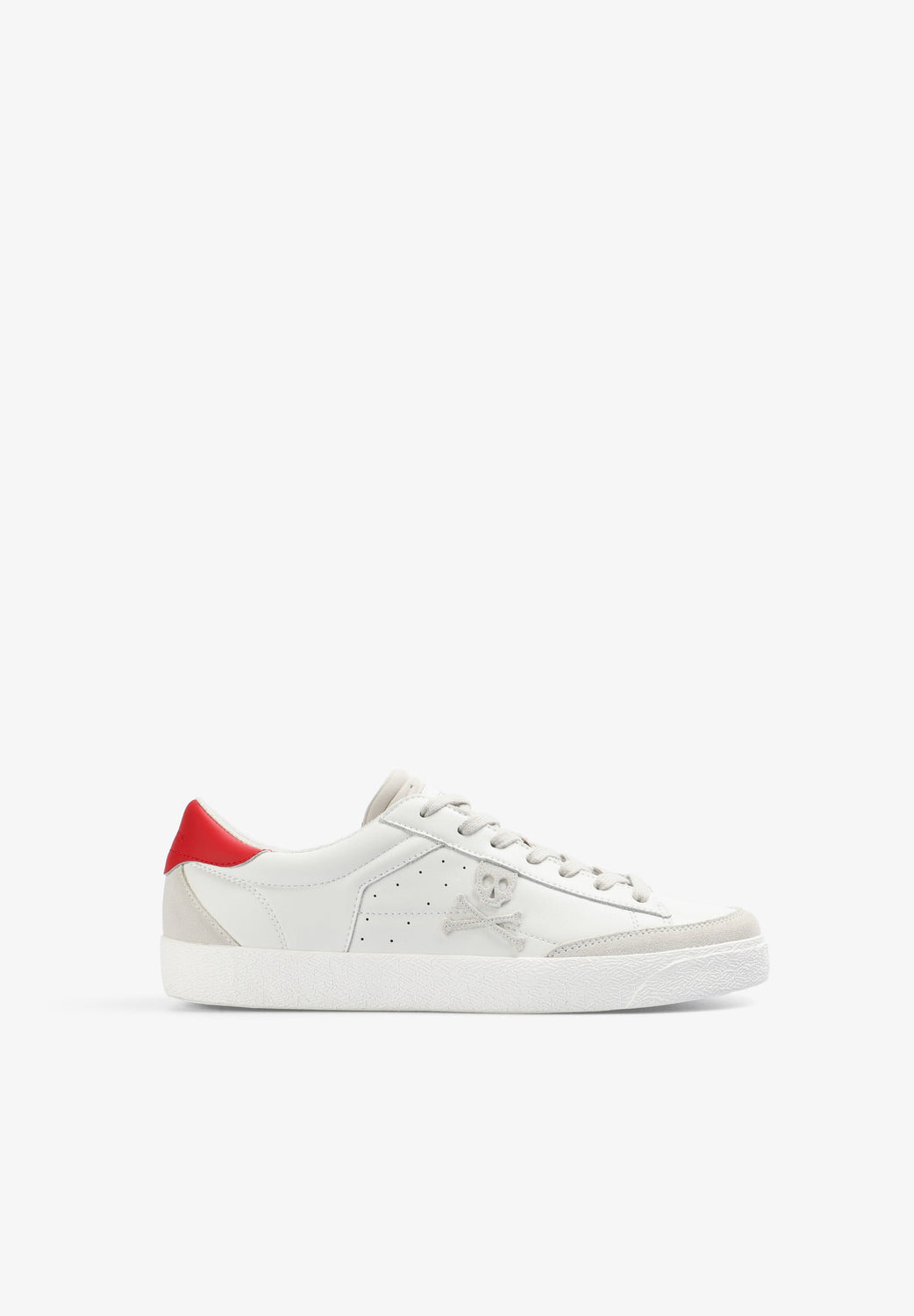 Sneakers con calavera lateral a contraste. Cierre con cordones a tono. Detalle de acabados en ante. Suela de goma. Detalle a contraste en talón y detalle de logo a tono. Etiqueta con logo en lengüeta.