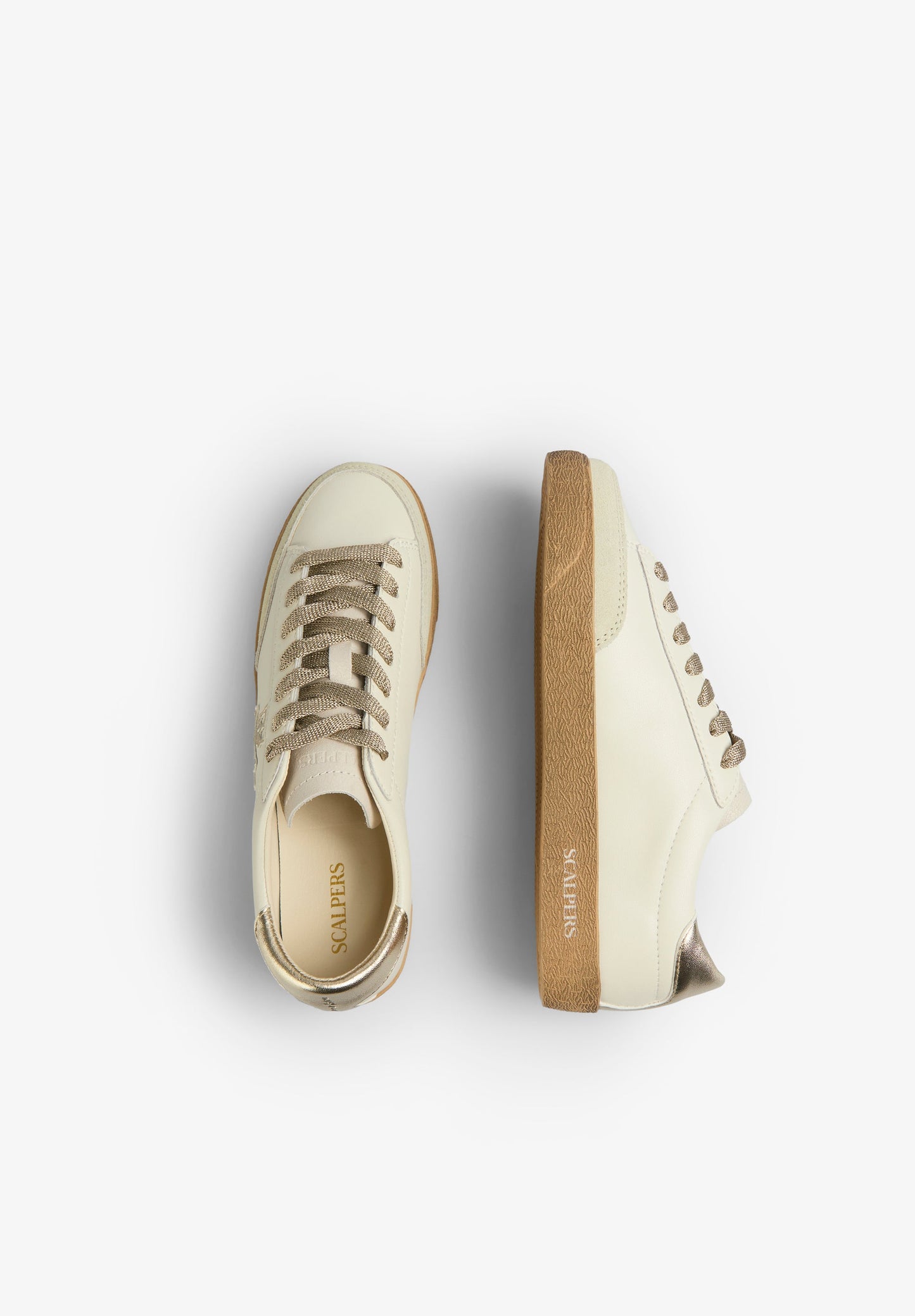 Sneakers bajas con calavera lateral a contraste metalizado y talón a contraste metalizado. Confeccionadas en ante. Cierre con cordones a contraste con glitter. Suela de goma caramelo. Detalles en ante a contraste en puntera. Detalles de logo grabado en talón.