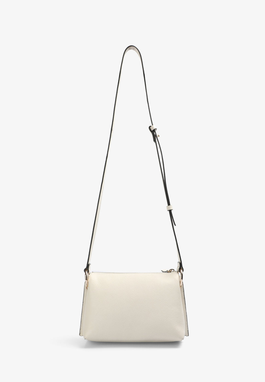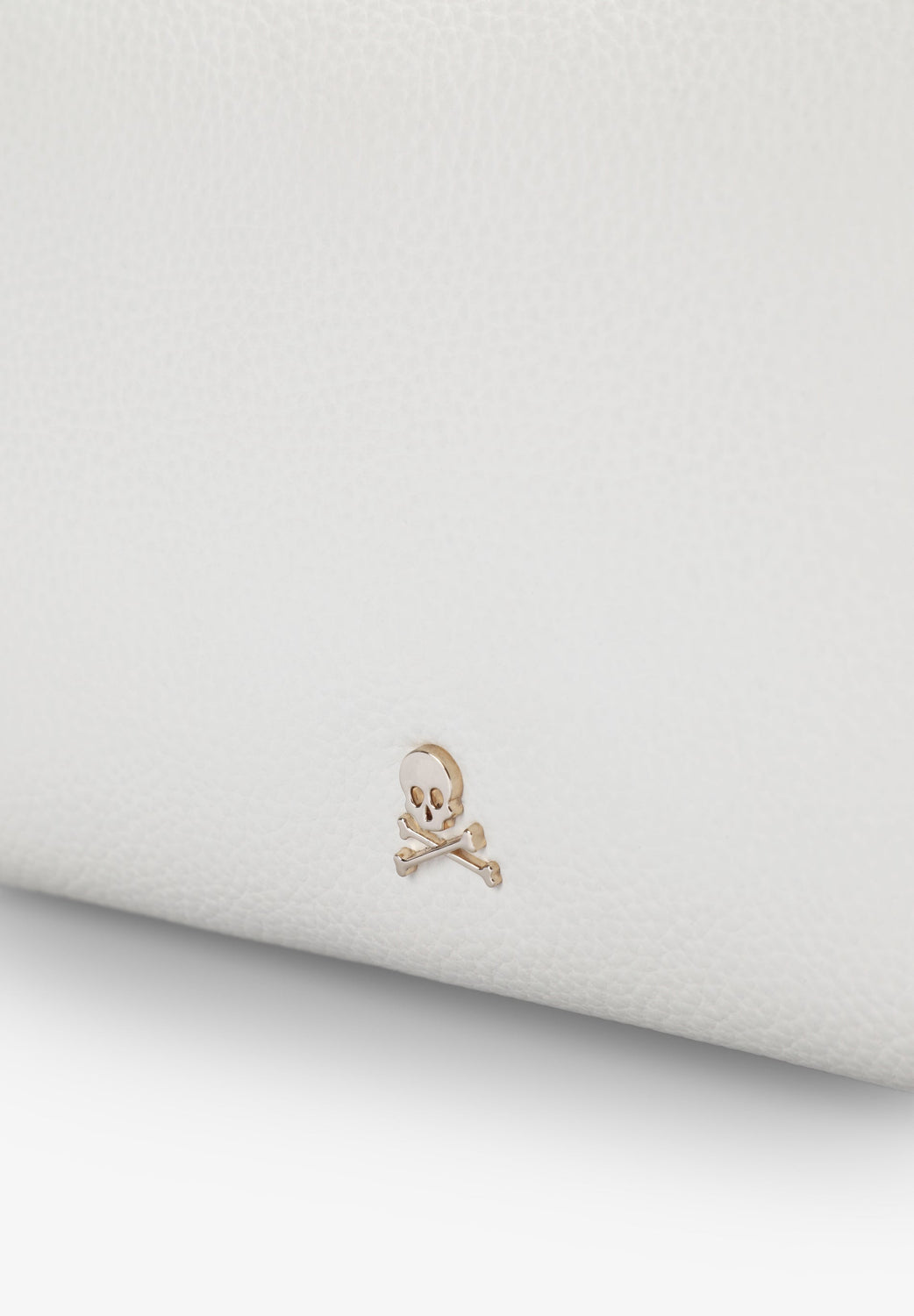 Bolso confeccionado en 100% piel. Cierre con cremallera, asa larga ajustable y calavera metálica.