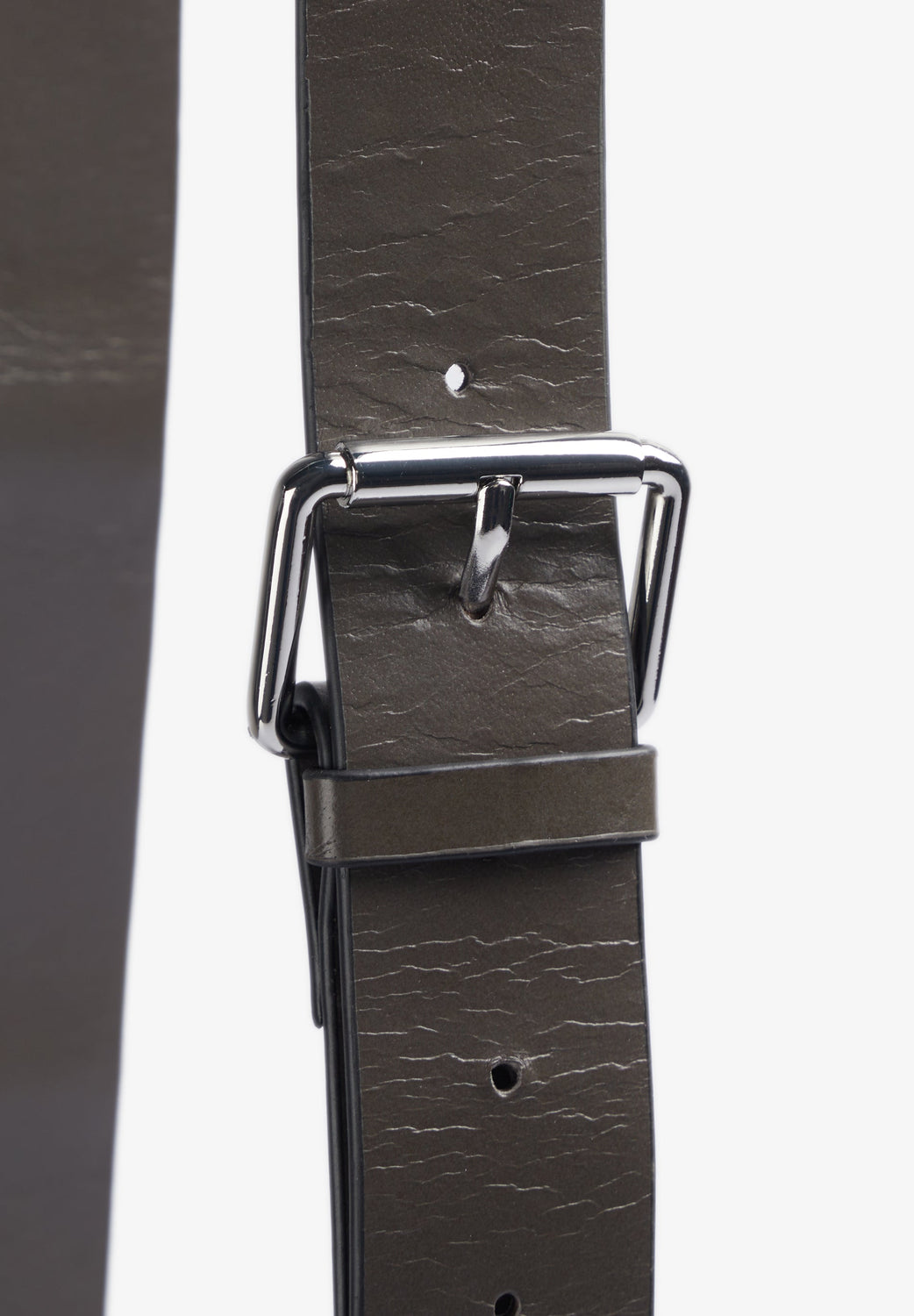 Bolso bandolera confeccionado en 100% piel. Cierre con cremallera y asa larga ajustable con calaveras metálicas. Detalle de logo metálico.