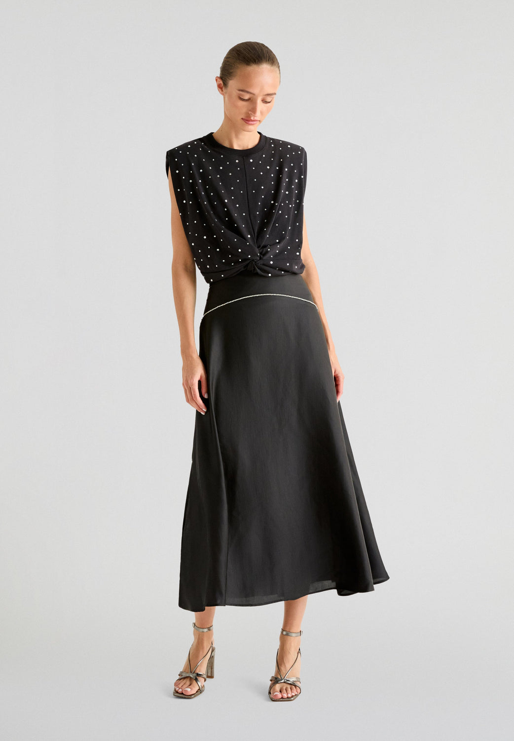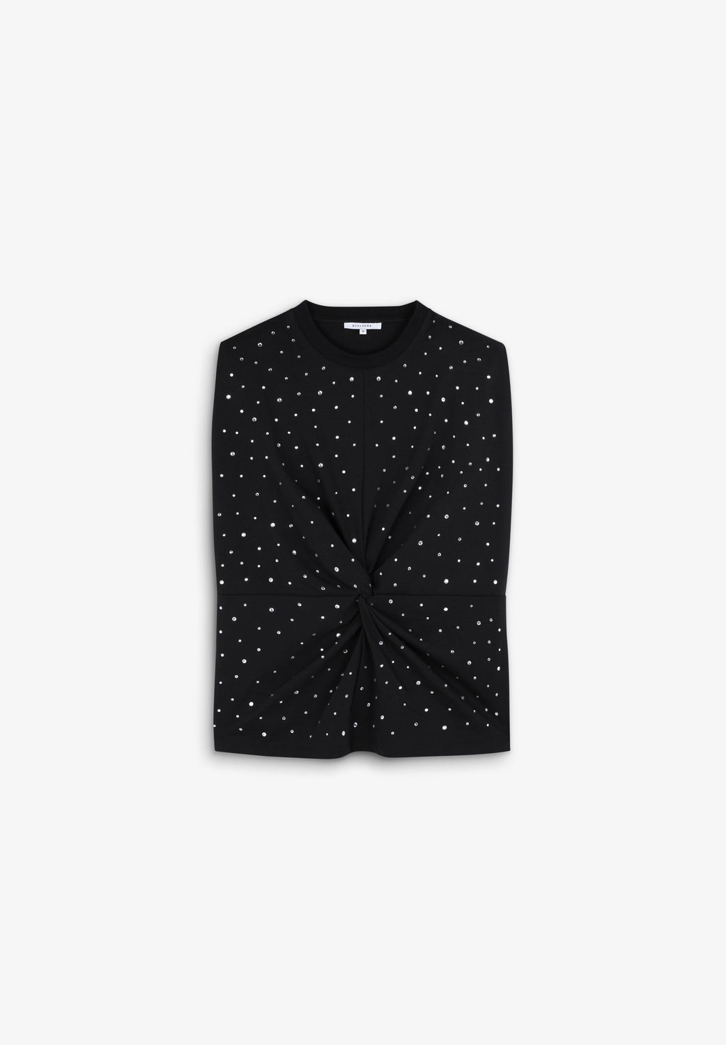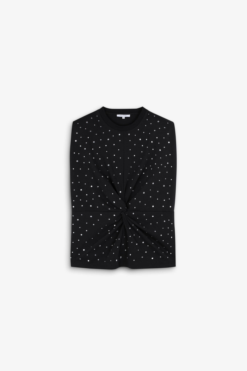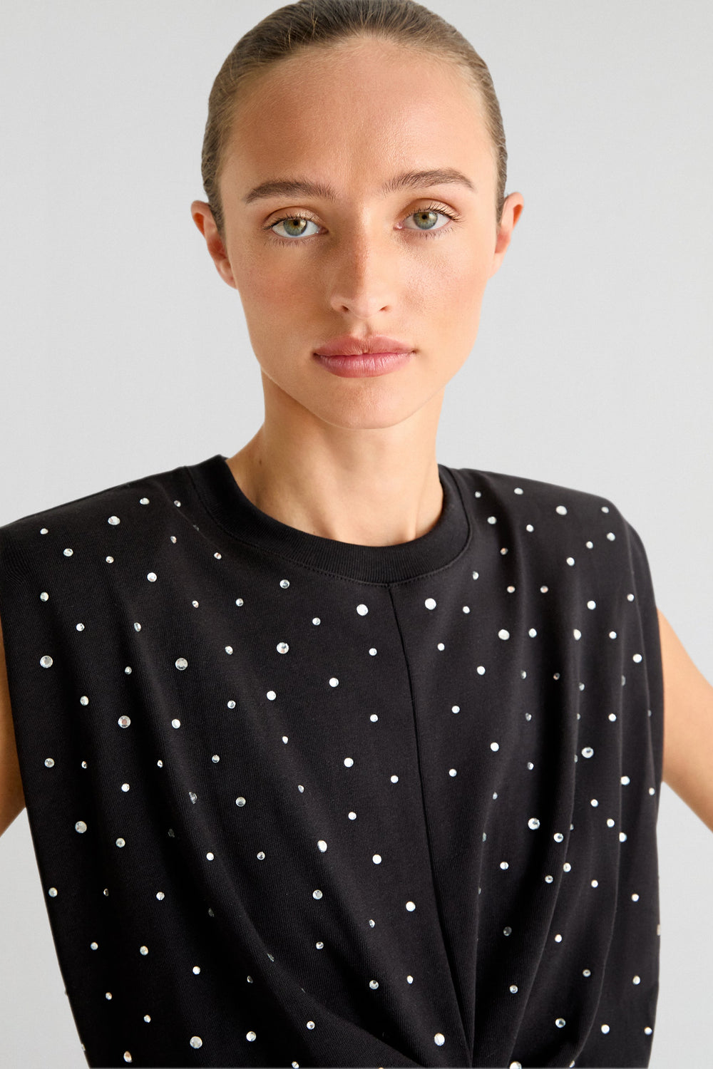 Camiseta con cristales all over confeccionada en 100% algodón BCI. Regular fit, cuello redondo y manga en sisa.
