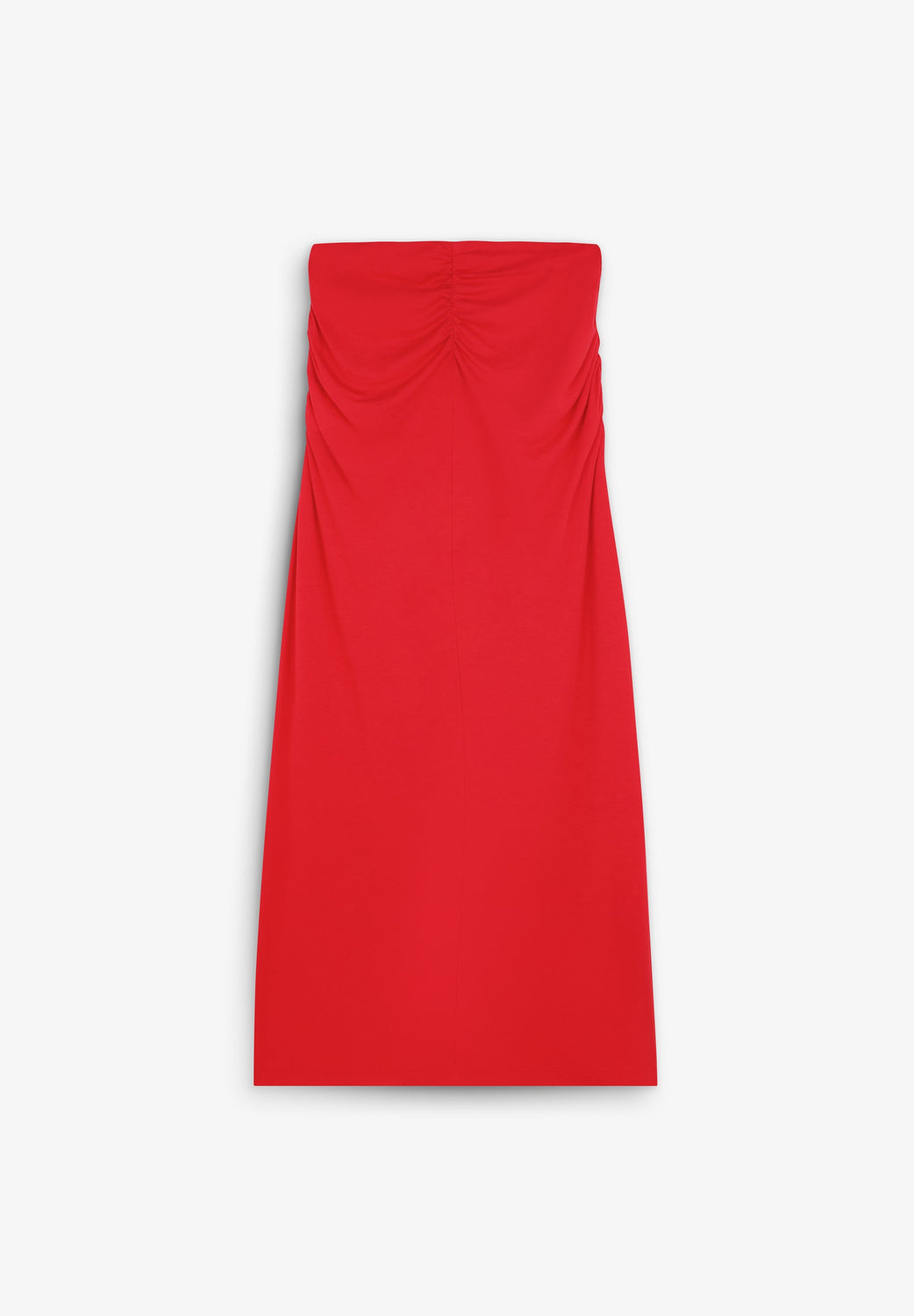 Falda midi con detalle de frunce delantero. Confeccionada en mezcla de algodón. Corte Regular fit. Cinturilla elástica.