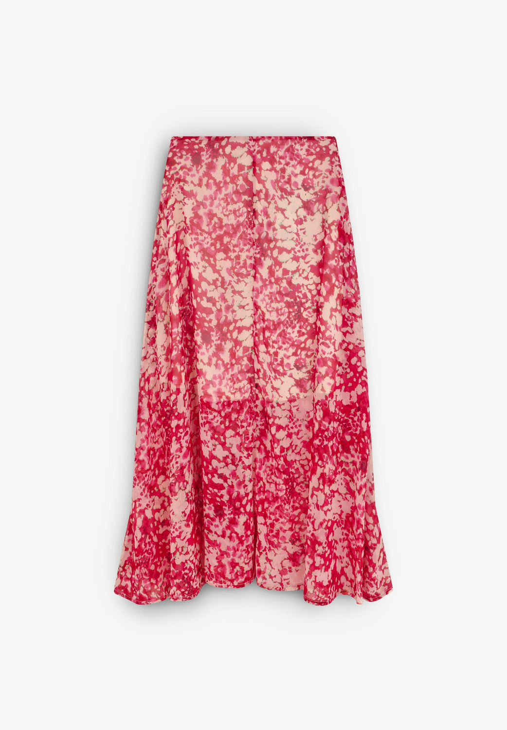 Falda Midi. Estampada. Detalle de volantes en bajos. Cierre en espalda mediante cremallera camuflada. Hecho en España.