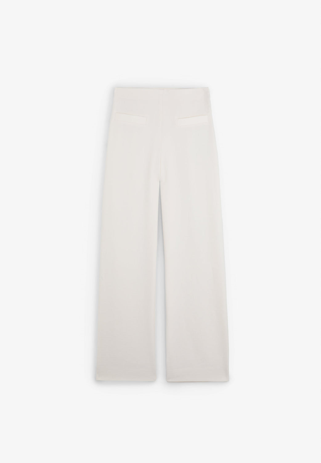 Pantalón confeccionado en tejido fluido. Corte Regular Fit y Full Length. Cierre con cremallera y botón oculto con cintura prologada. Bolsillos frontales con vivo.