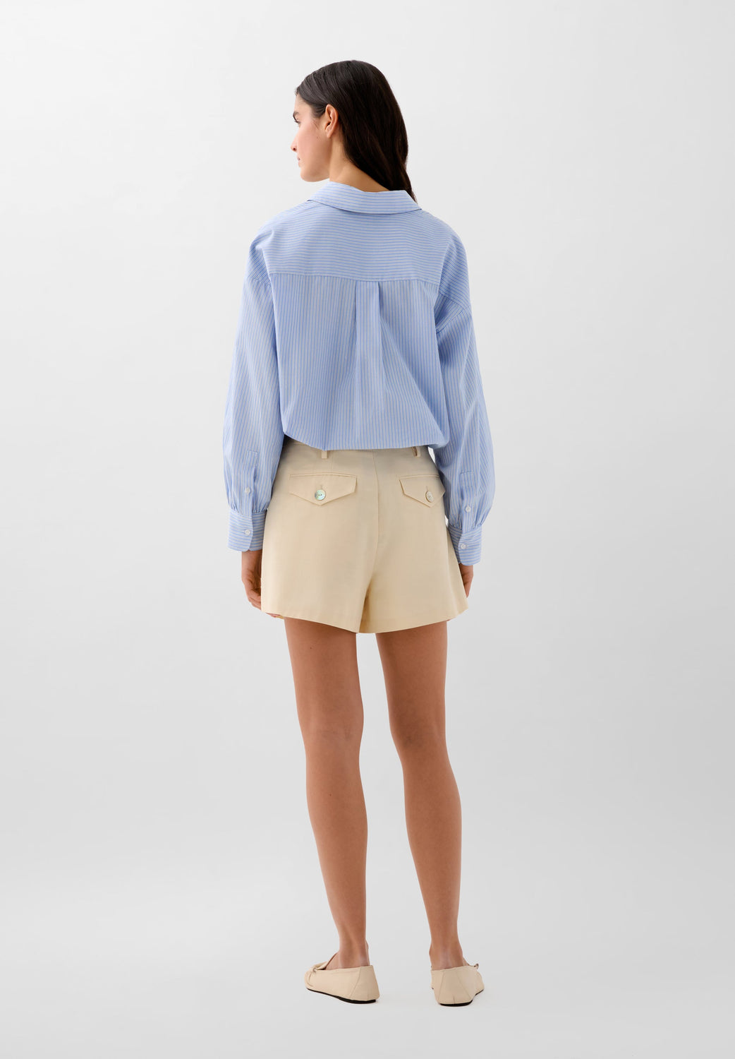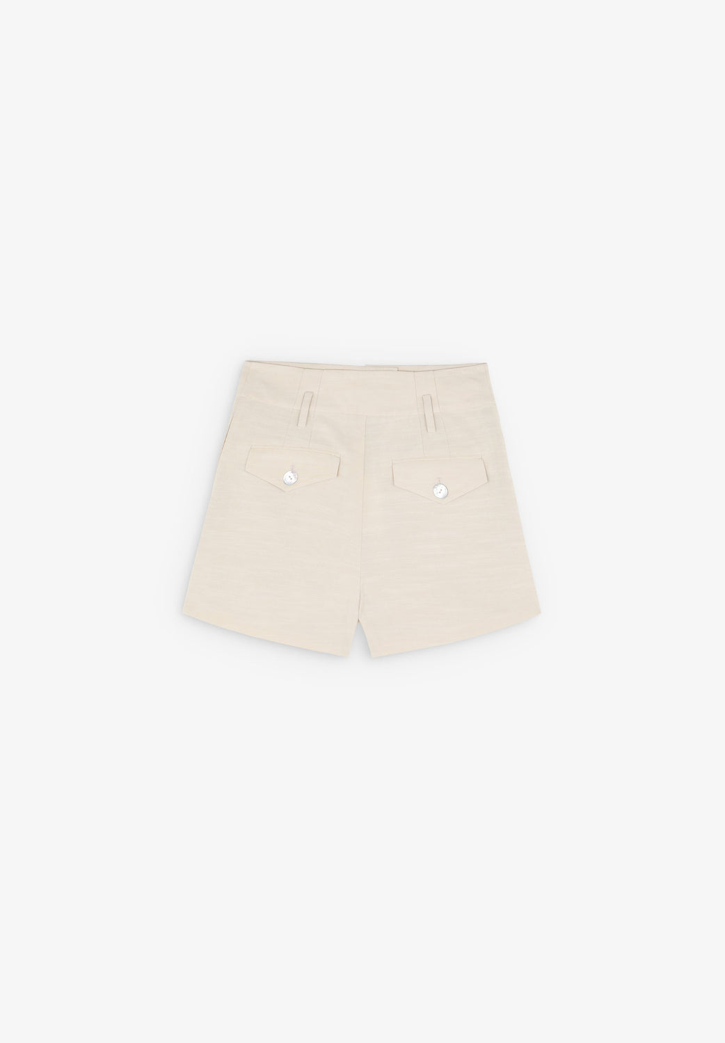 Bermuda confeccionada en algodón. Cierre mediante botón y cremallera. Bolsillos traseros con solapa.