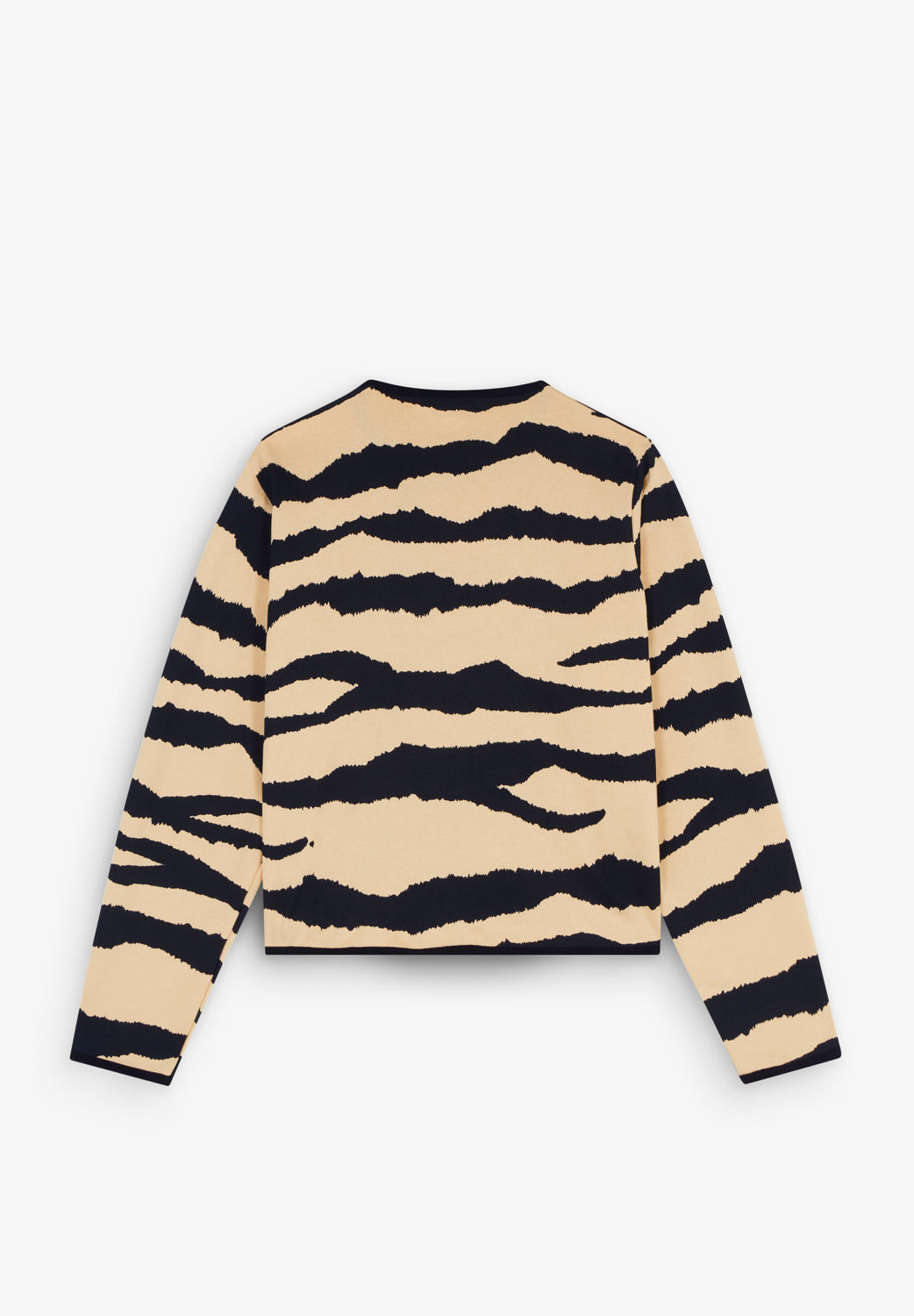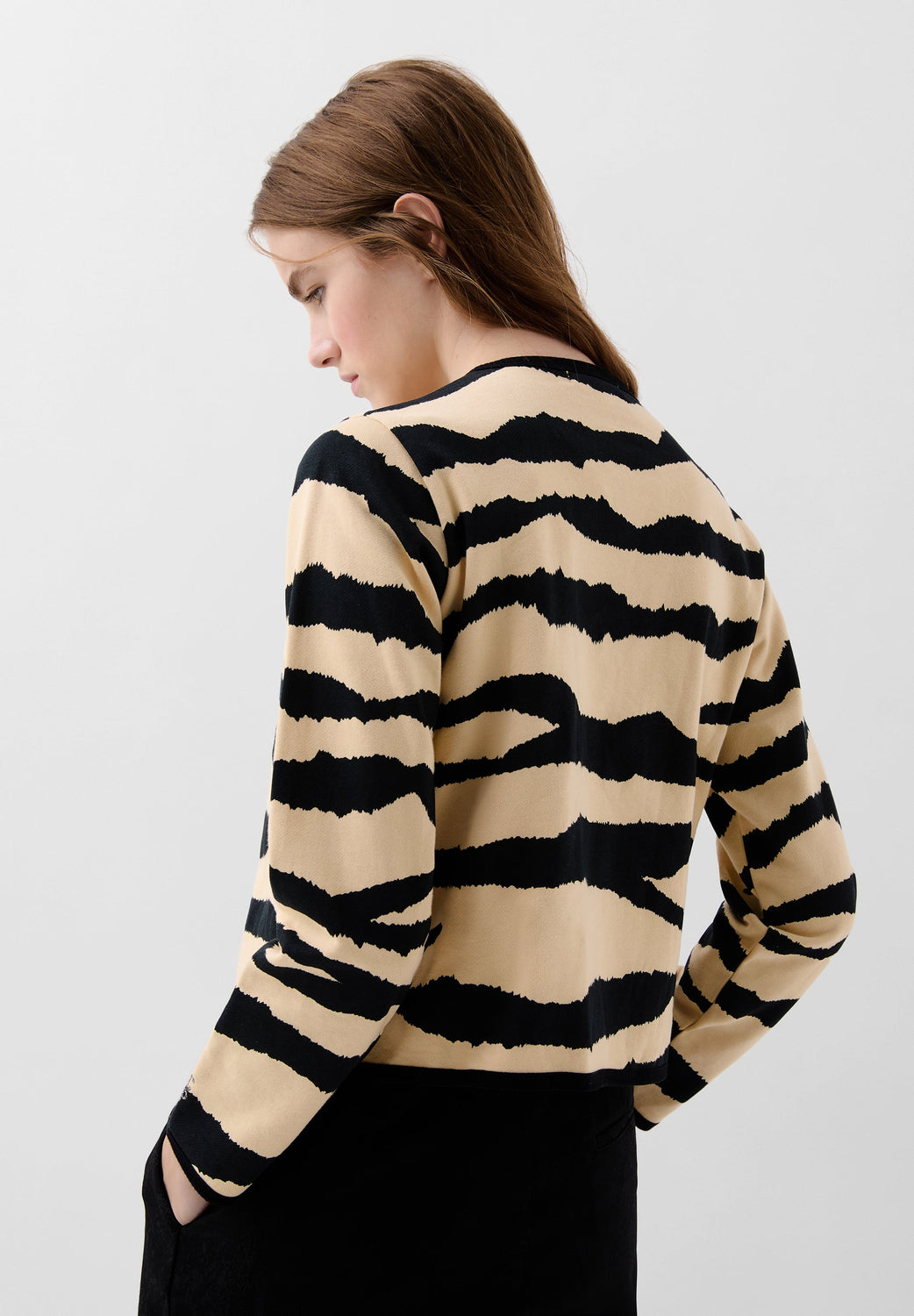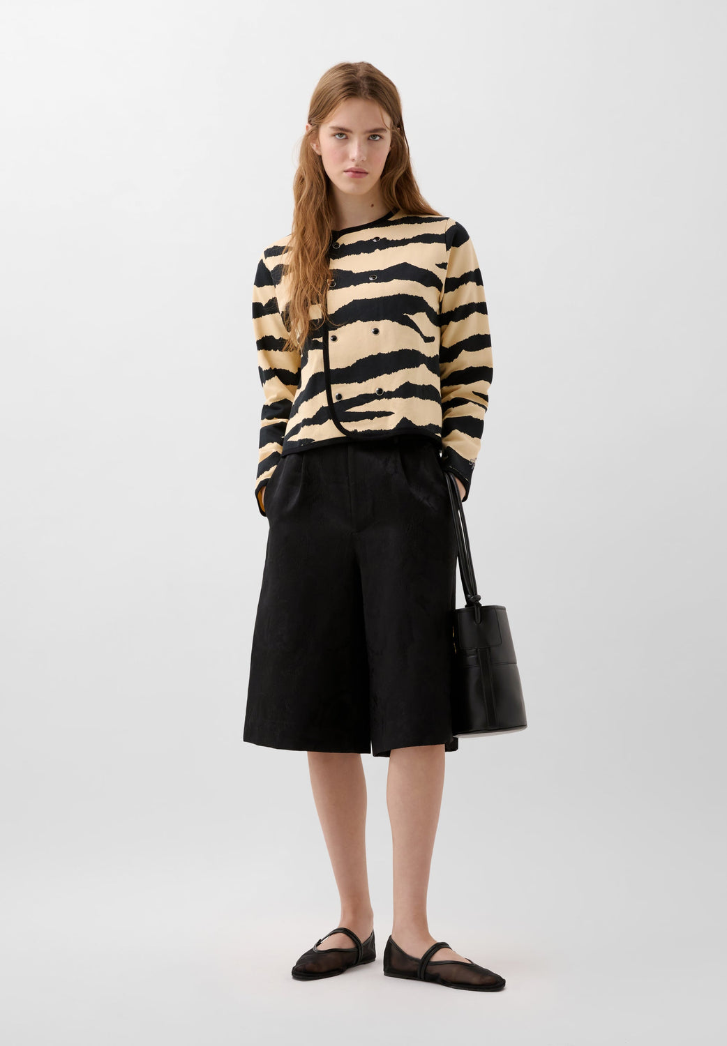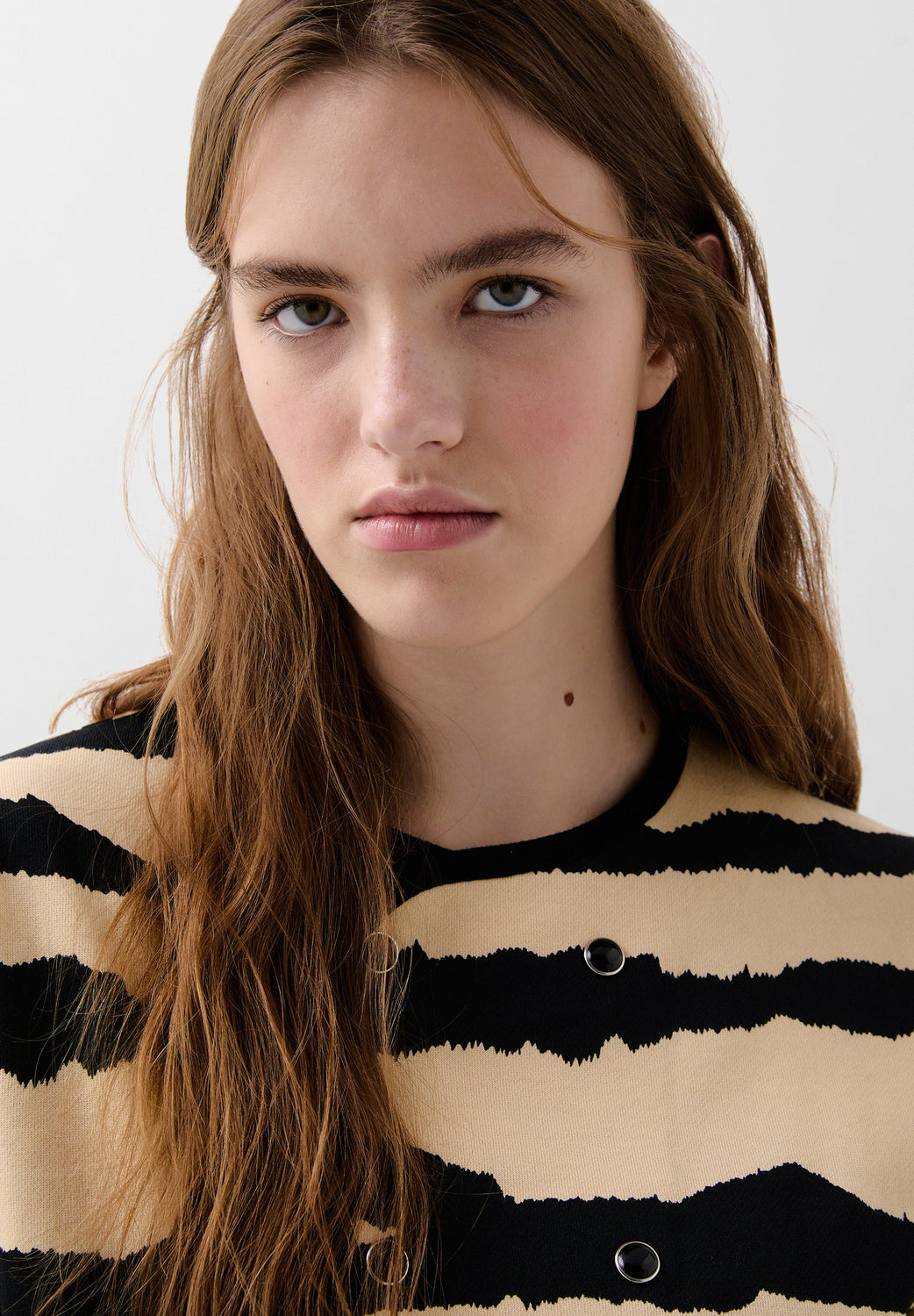 Chaqueta de cebra confeccionada en 100% algodón. Regular fit, cuello redondo y cierre con botones de snaps. Manga larga.