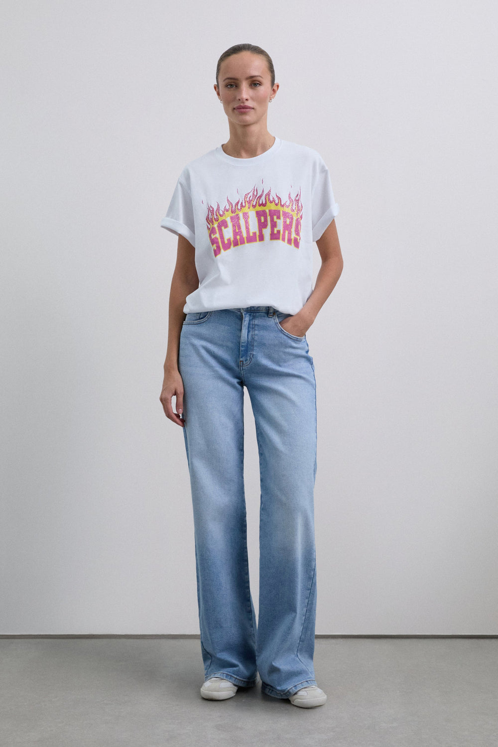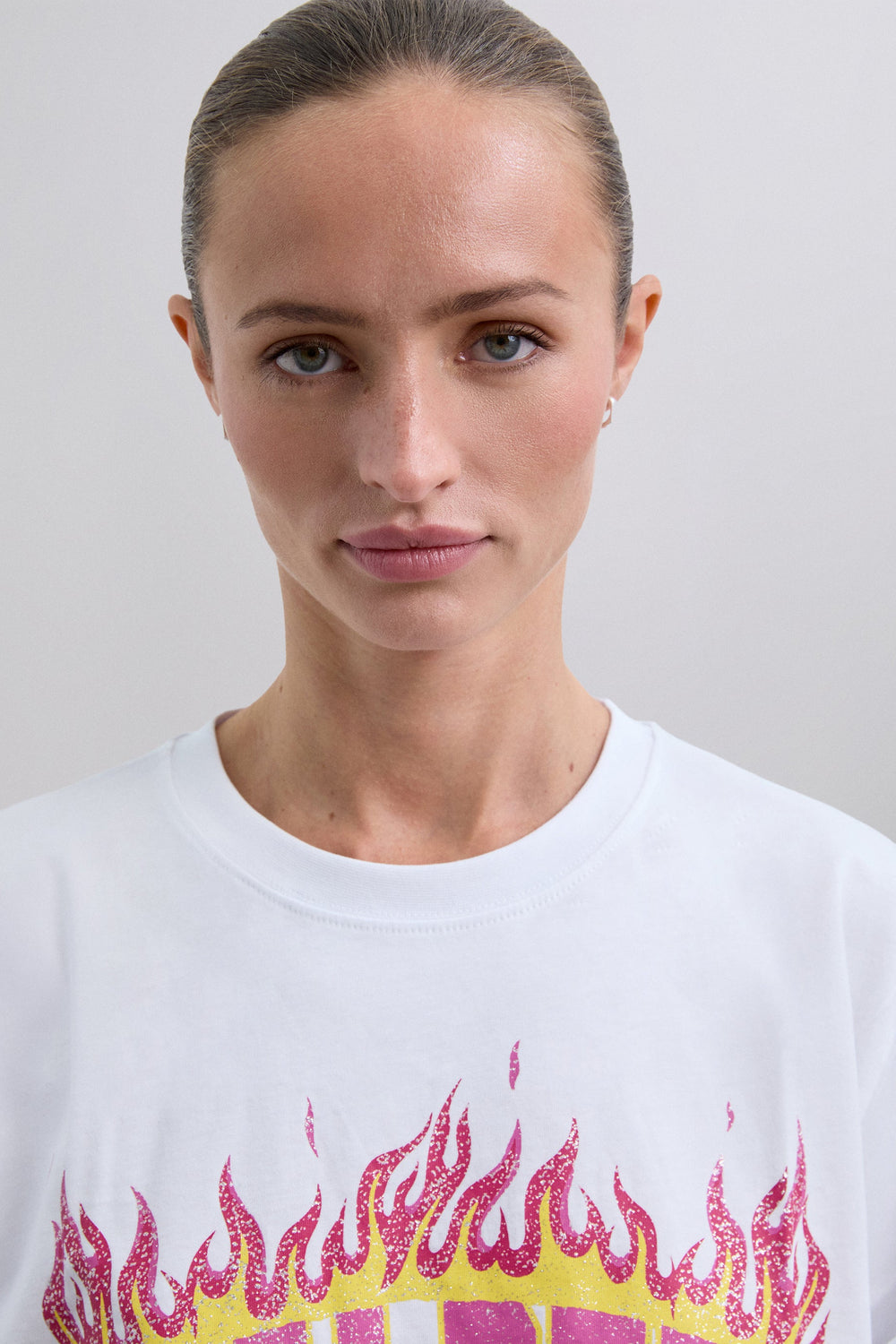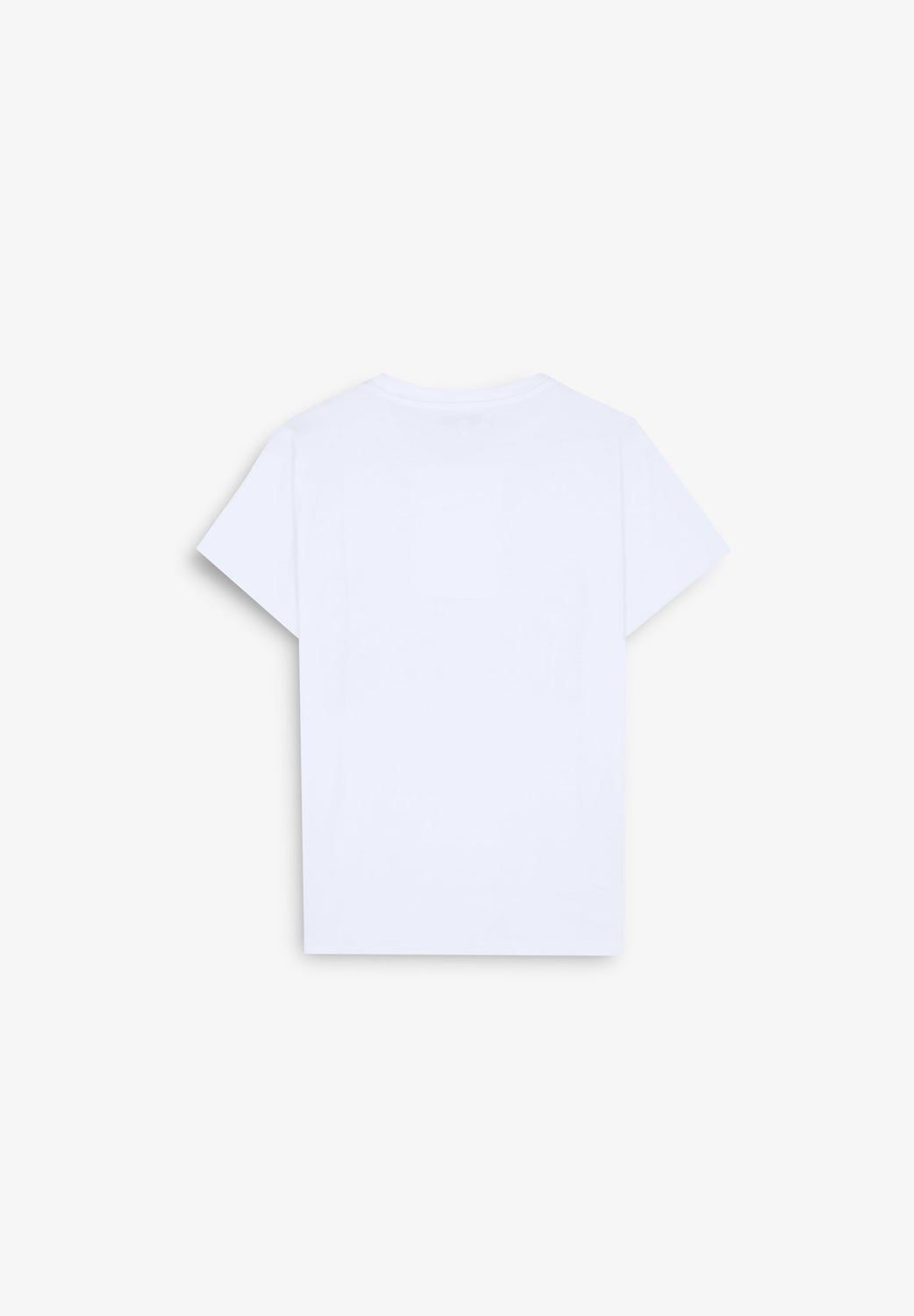 Camiseta confeccionada en algodón 100%. Corte regular fit, cuello redondo y manga corta. Print frontal con logo en pecho.
