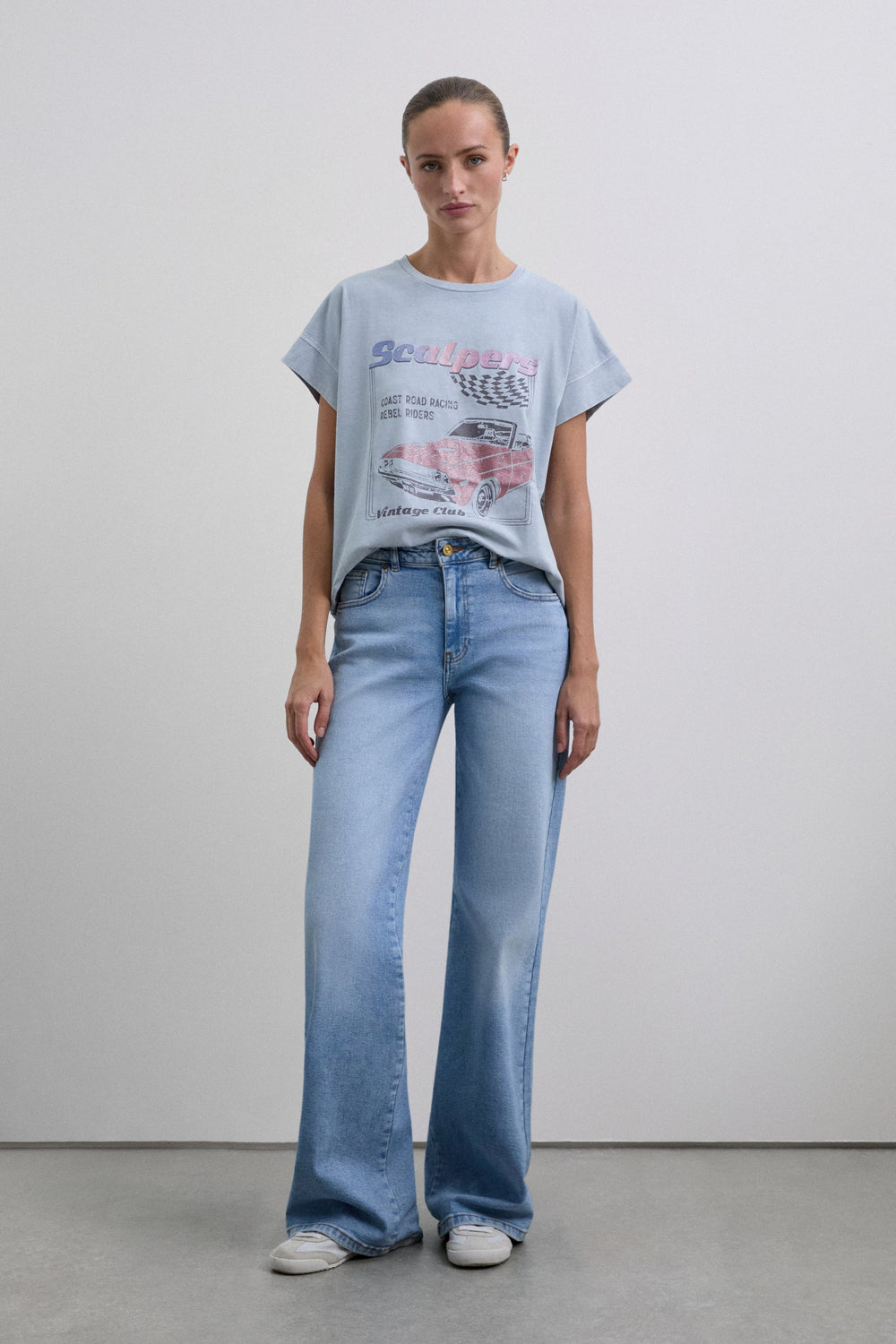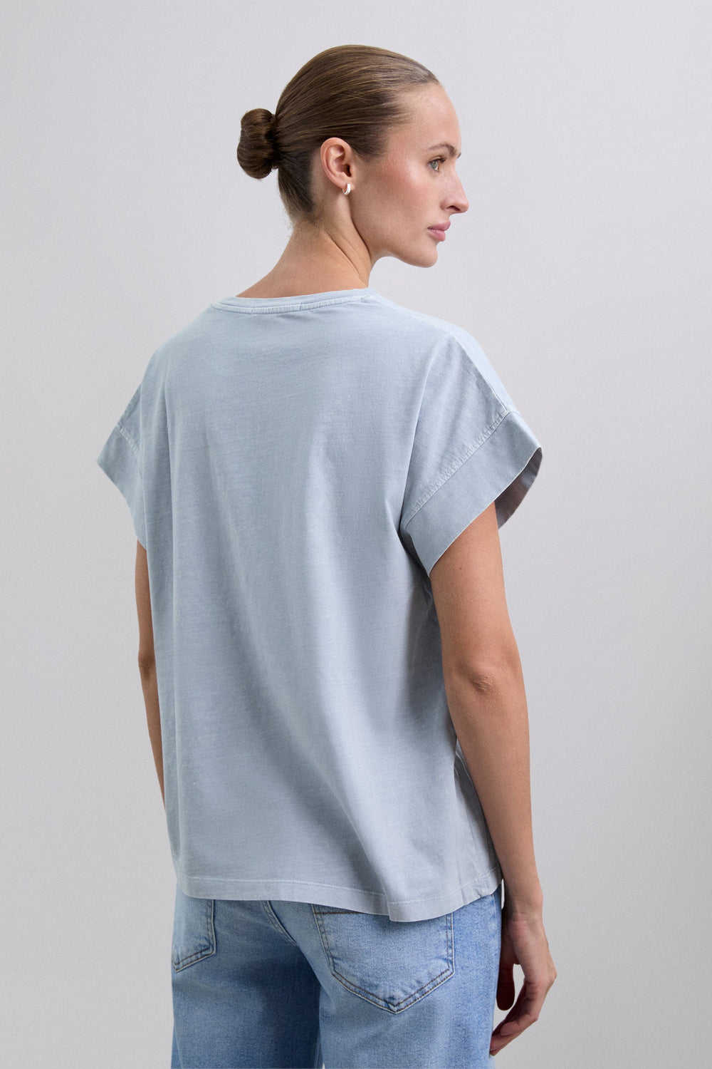 Camiseta confeccionada en 100% algodón BCI. Cuello redondo. Corte regular fit. Manga corta. Print frontal con logo. Detalle doblado alrededor de la sisa.