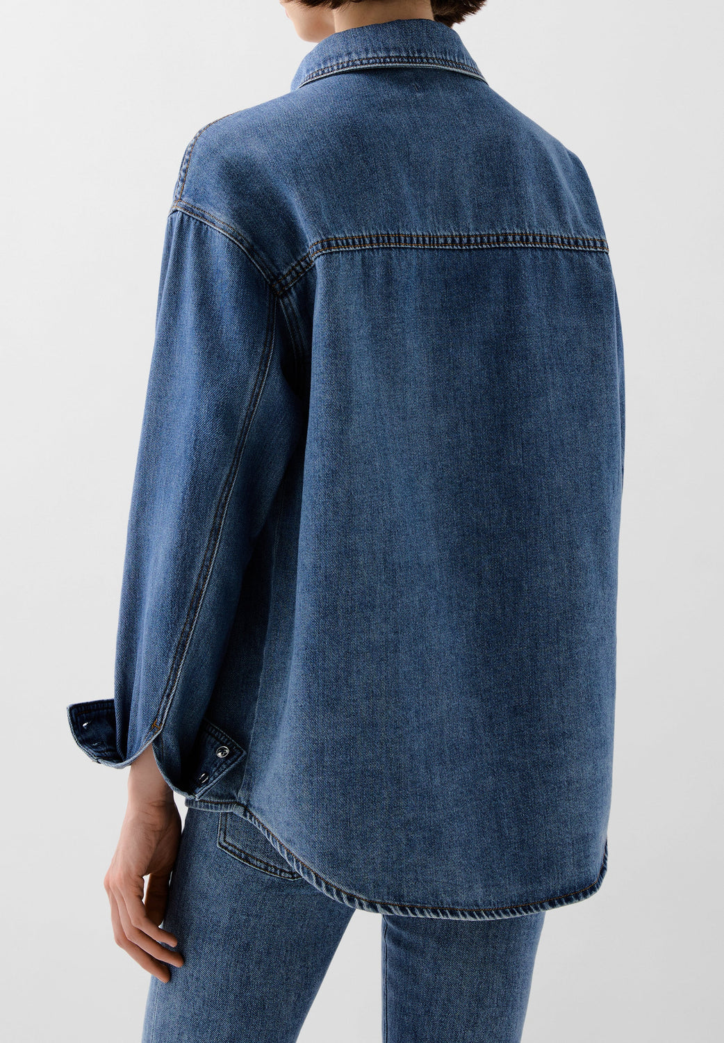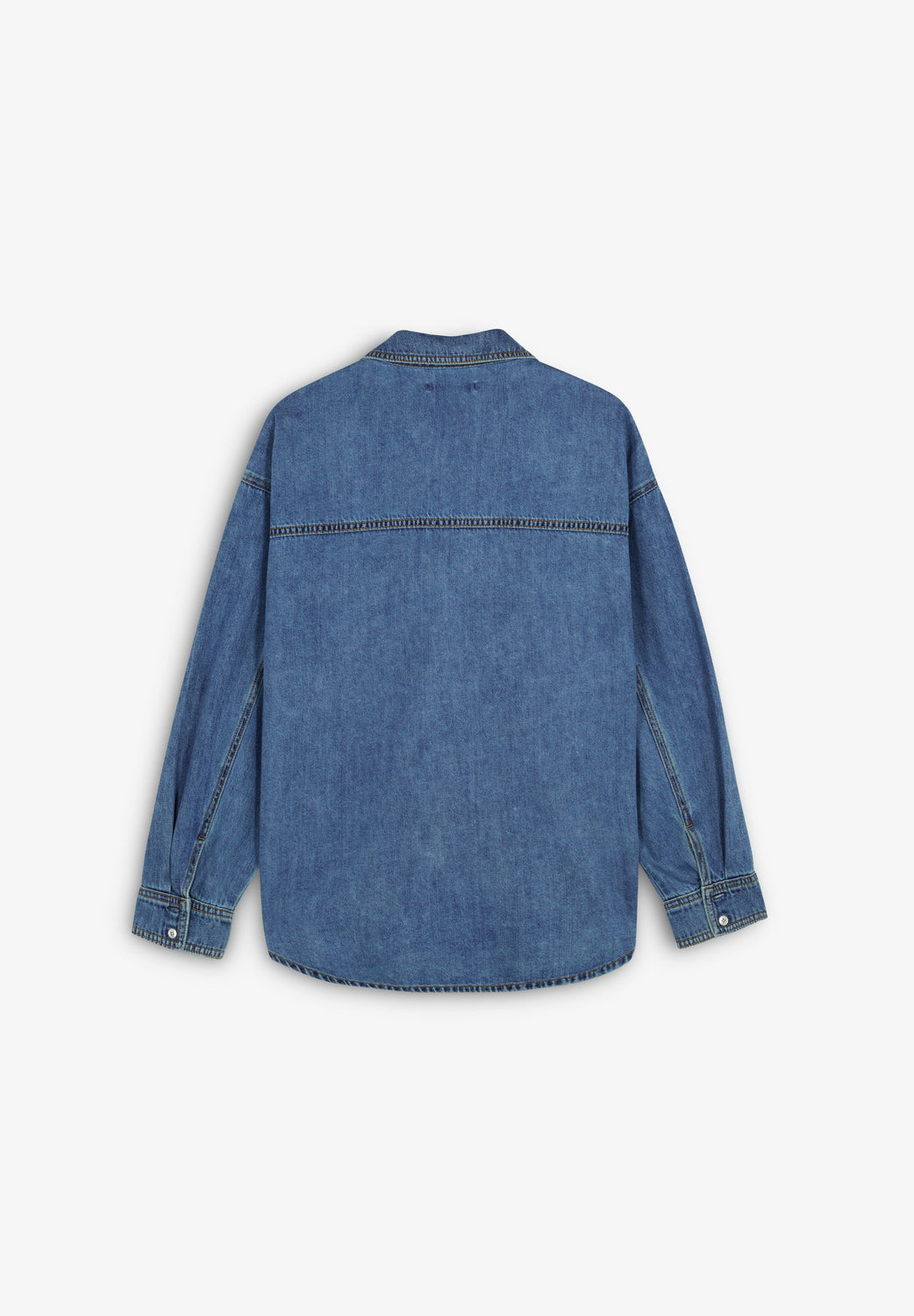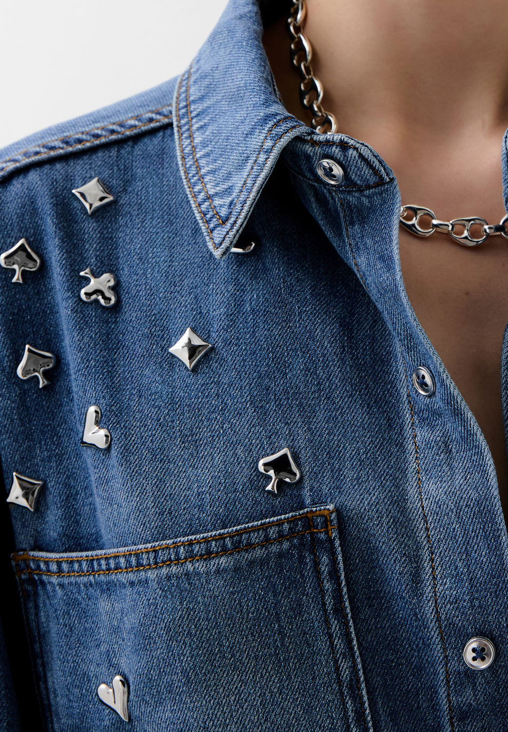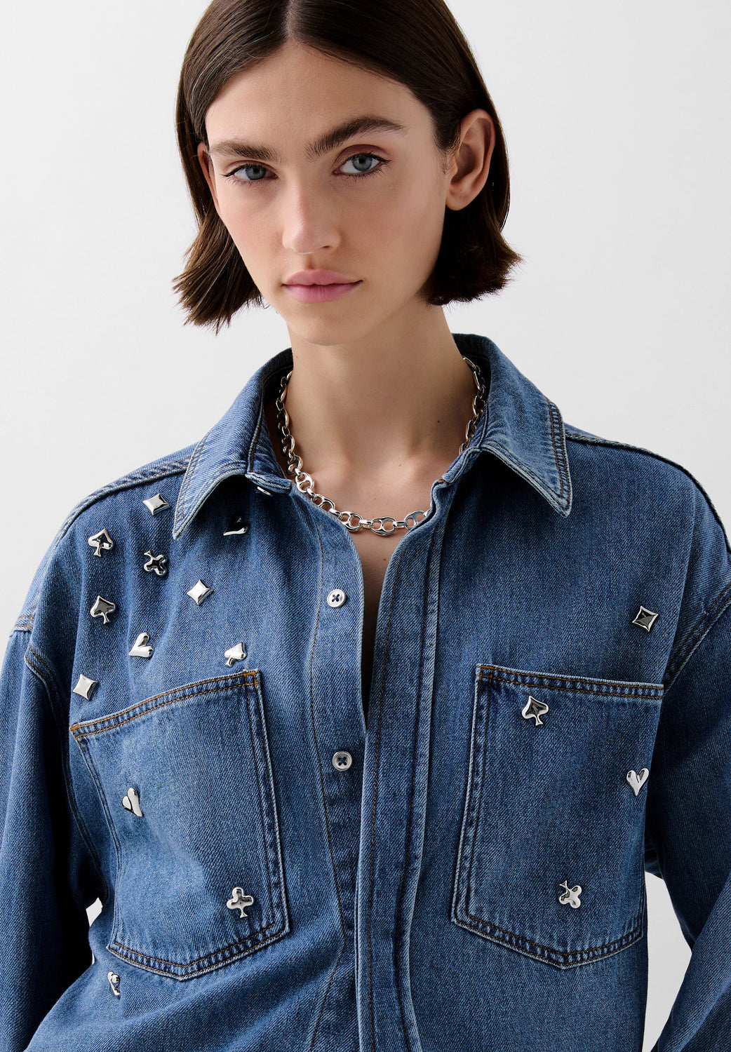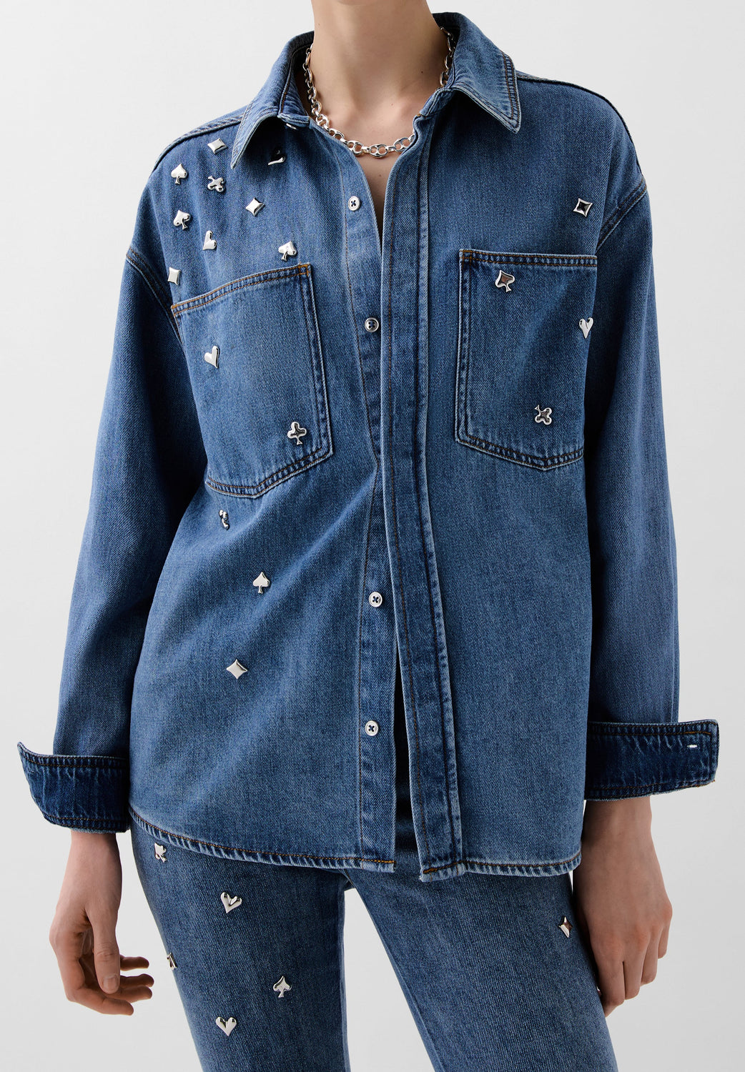 Camisa denim con detalles de tachuelas confeccionada en 100% algodón. Corte regular fit, cuello camisero y cierre con botones. Manga larga acabada en puño y bolsillos de parche frontales.