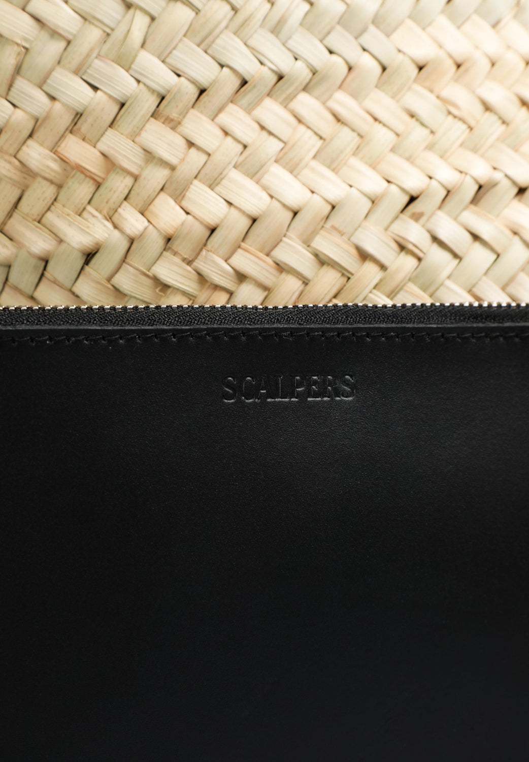 Bolso tipo capazo con logo. Confeccionado en 100% hoja de palma. Asas largas. Cierre con snap. Bolsillo interior de piel.