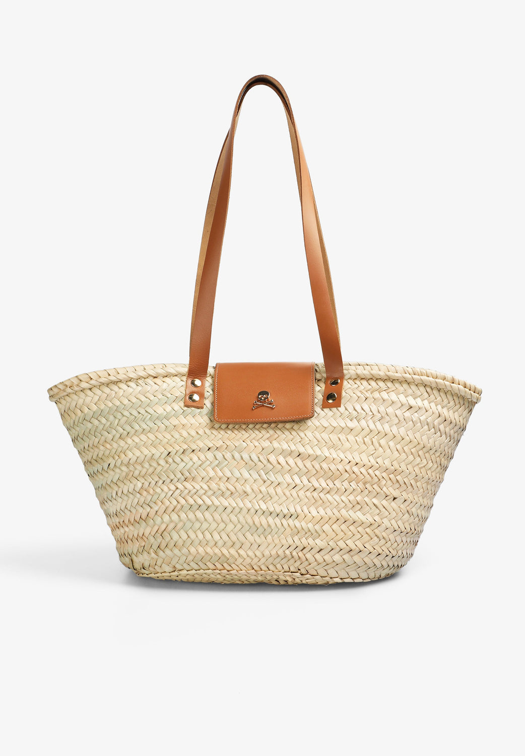 Bolso tipo capazo con logo. Confeccionado en 100% hoja de palma. Asas largas. Cierre con snap. Bolsillo interior de piel.