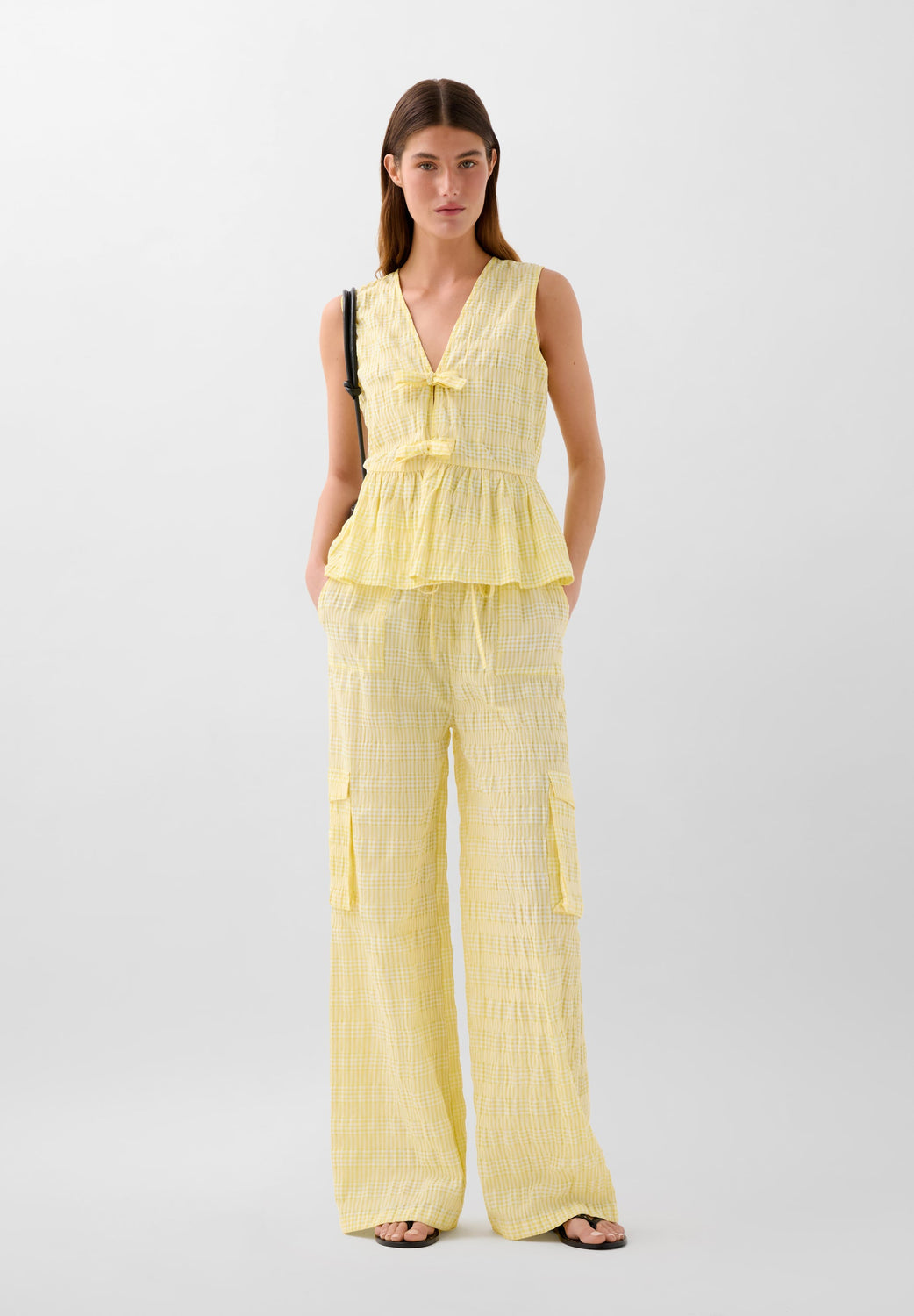 Pantalón cargo confeccionado en Algodón. Cintura ajustable mediante elástico. Dos bolsillos en frontal y dos en posterior. Detalle de bolsillos en bajos.