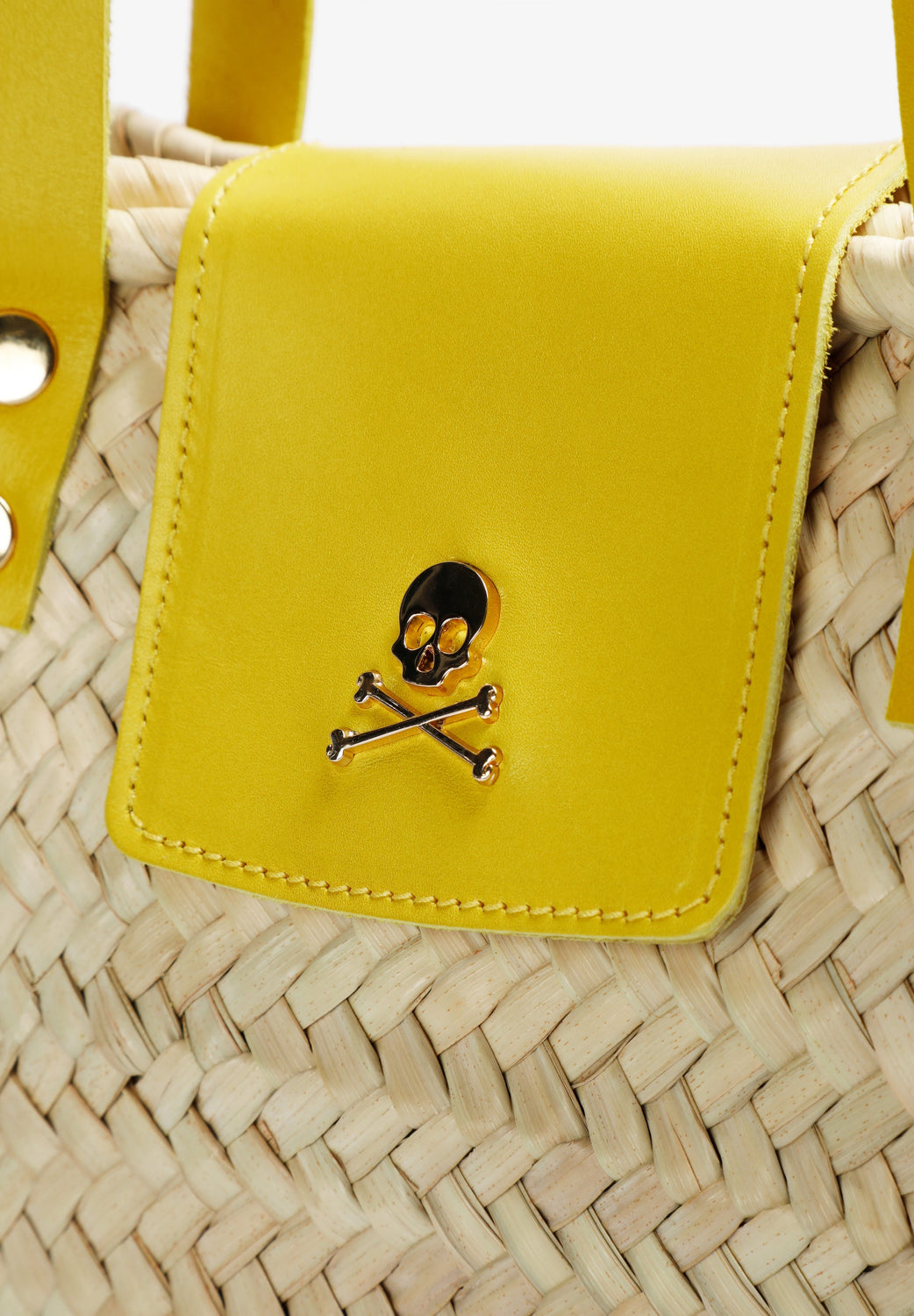Bolso tipo capazo con logo. Confeccionado en 100% hoja de palma. Asas largas. Cierre con snap.