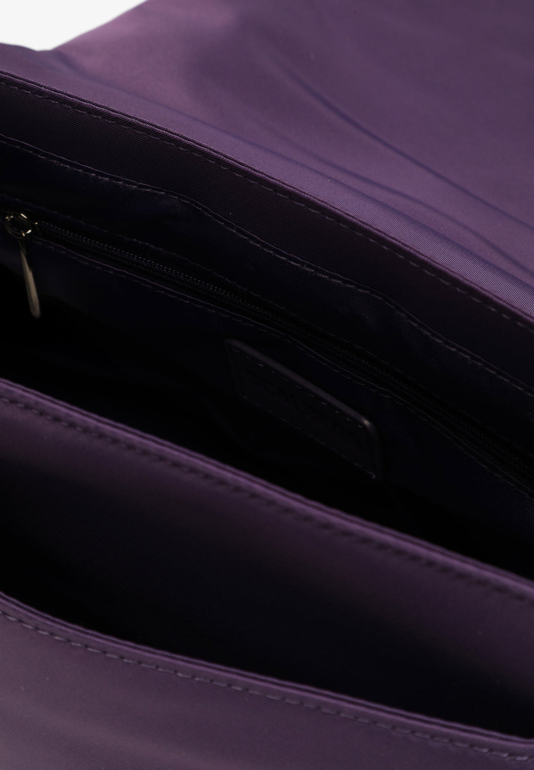 Bolso bandolera acolchado con detalle logo metálico. Confeccionado en nylon reciclado. Cierre de solapa con imán. Asa larga regulable y asa corta trenzada con detalles fantasía. doble compartimento. Bolsillo interior con cremallera.