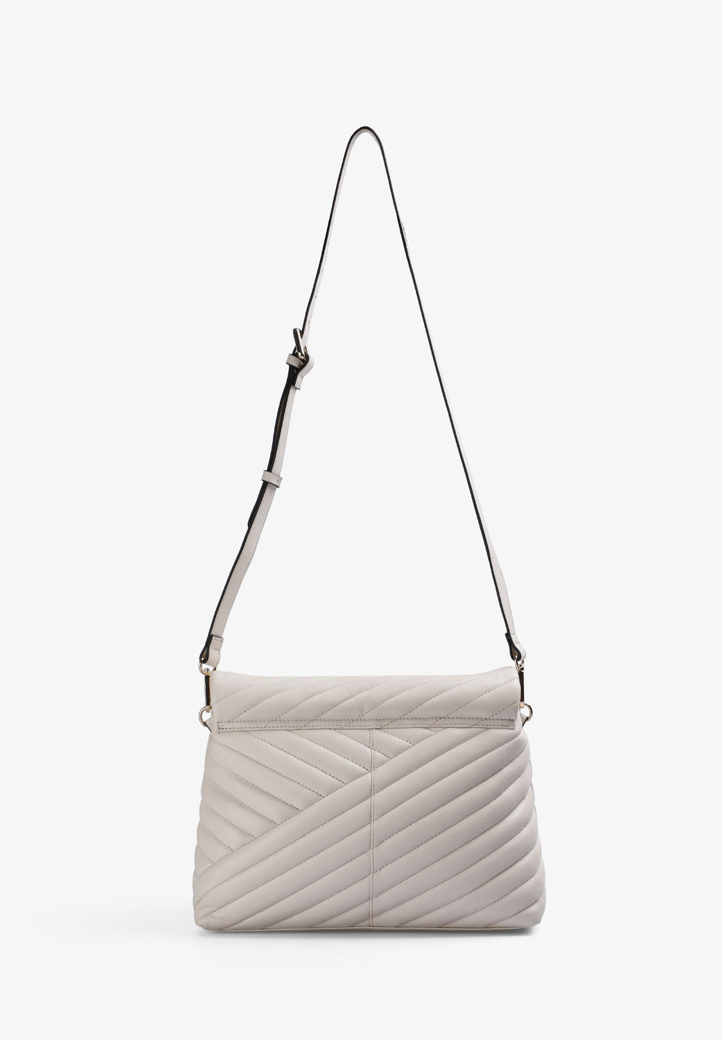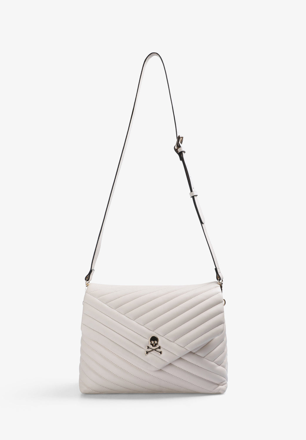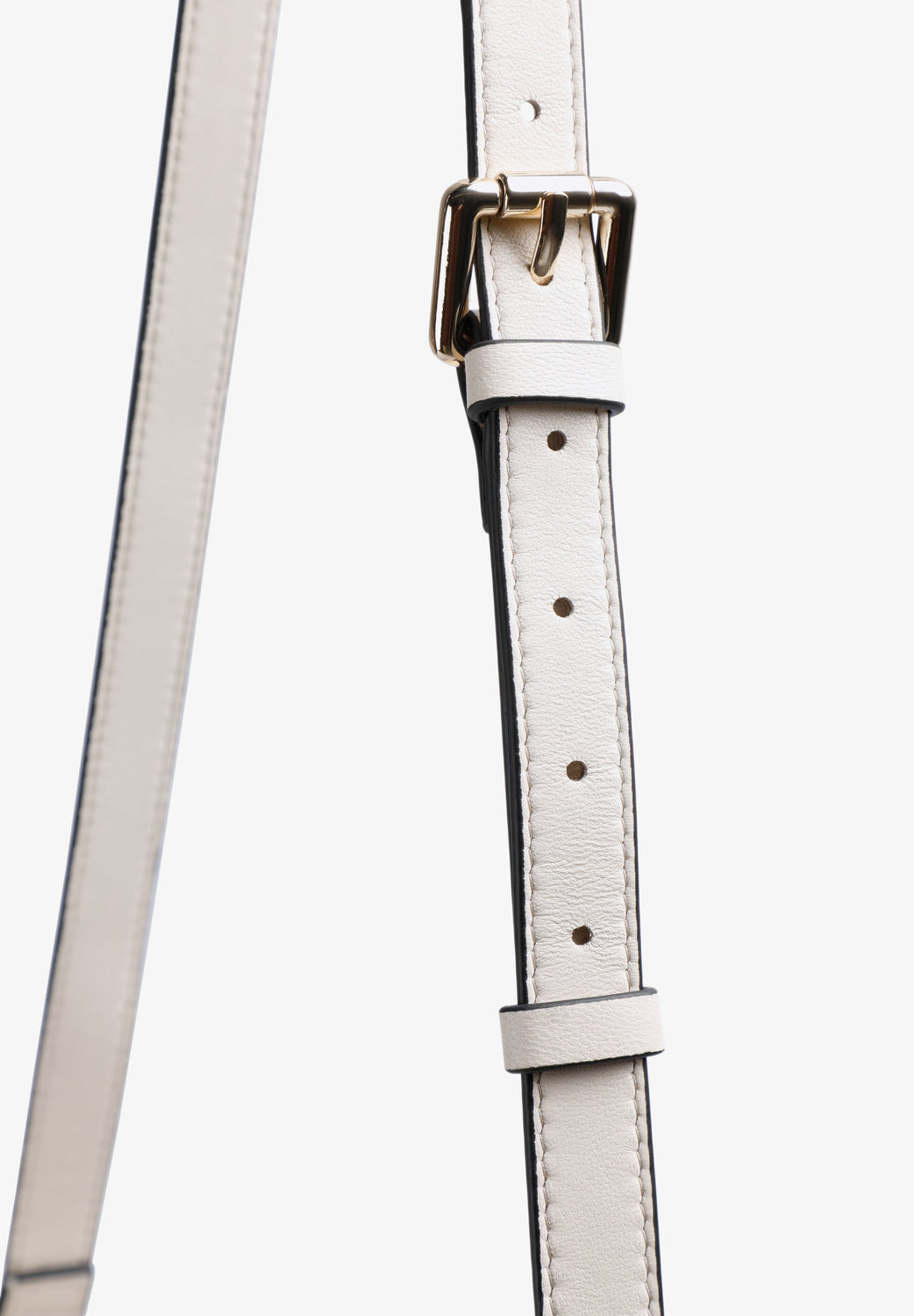 Bolso confeccionado en 100% piel. Asa ajustable.. Cierre por botón a presión. Bolsillos interiores con cremallera. Detalle de logo en cierre frontal.