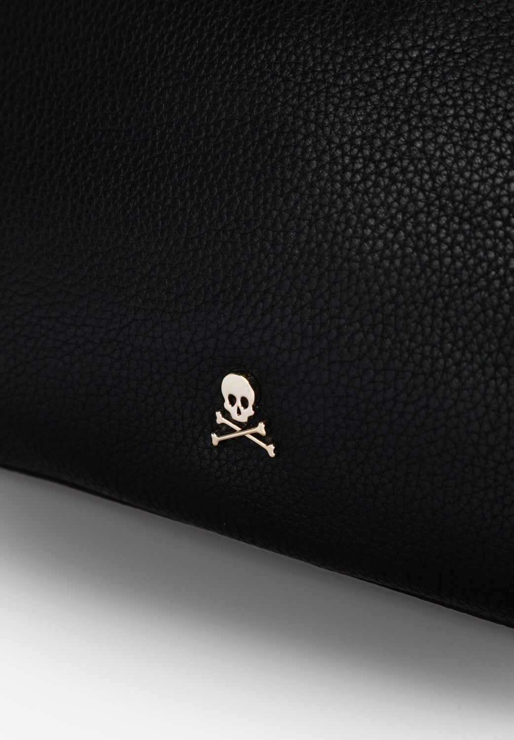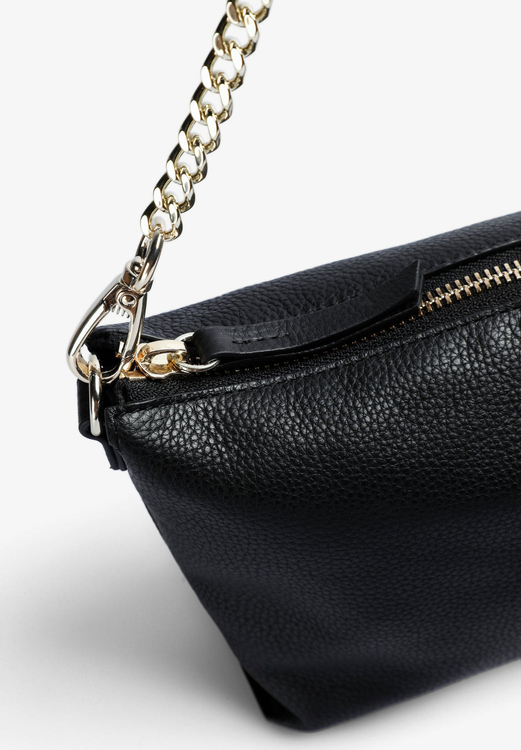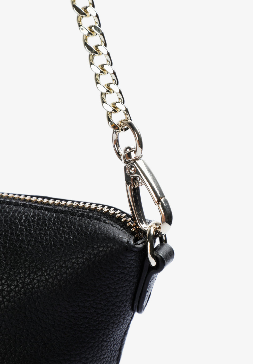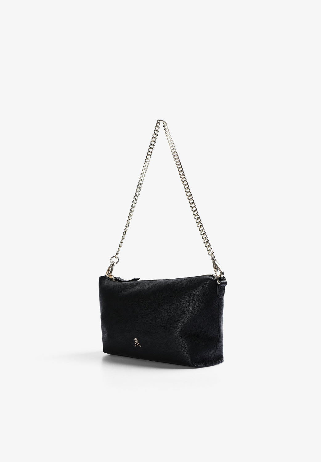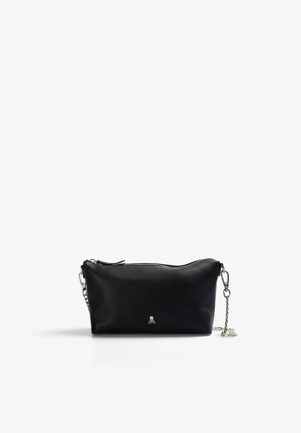 Bolso confeccionado en 100% piel. Cierre con cremallera y asa de cadena desmontable. Forro interior y bolsillo. Parche frontal con logo metalizado.
