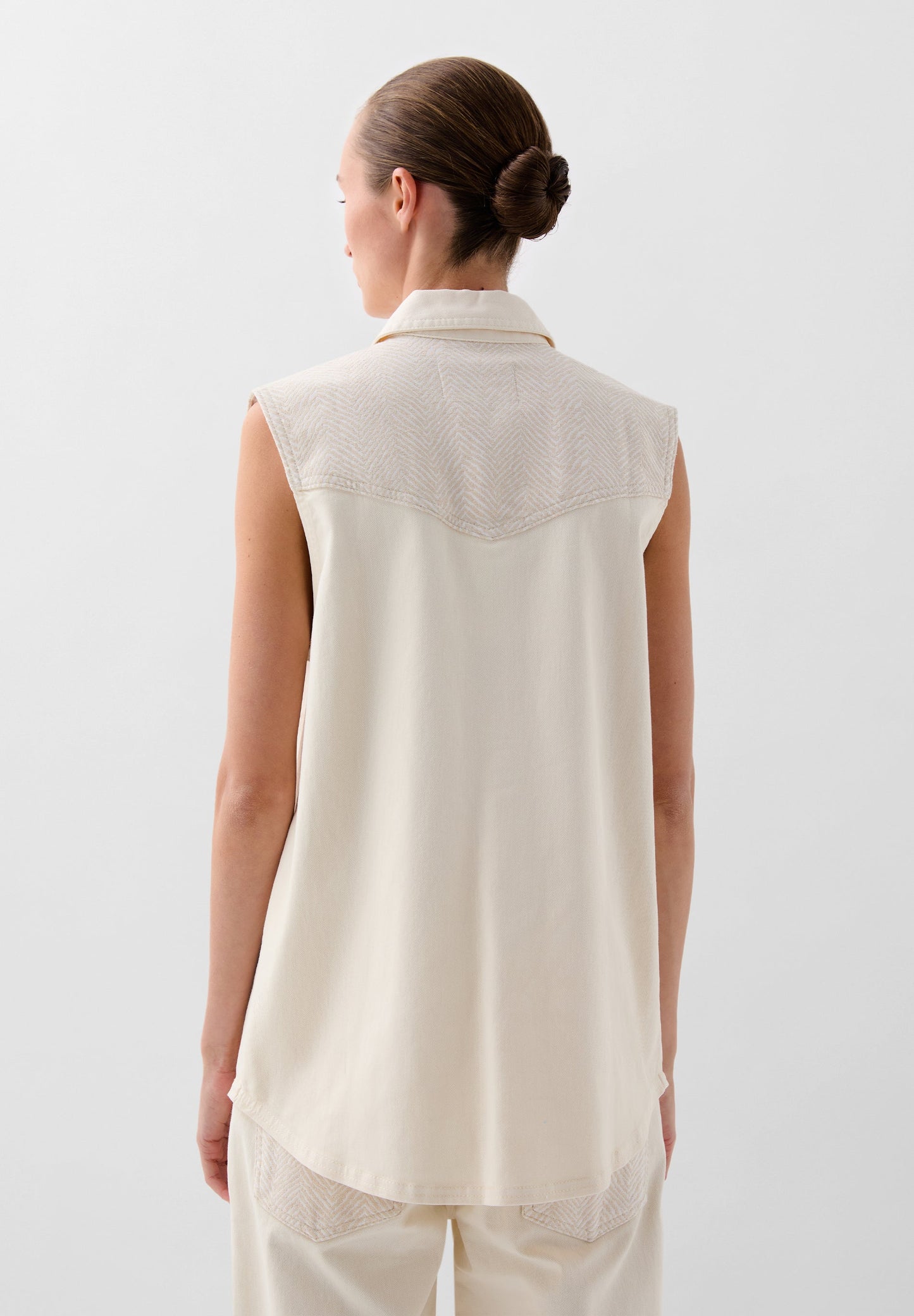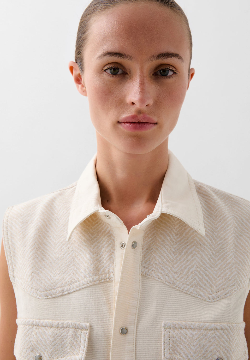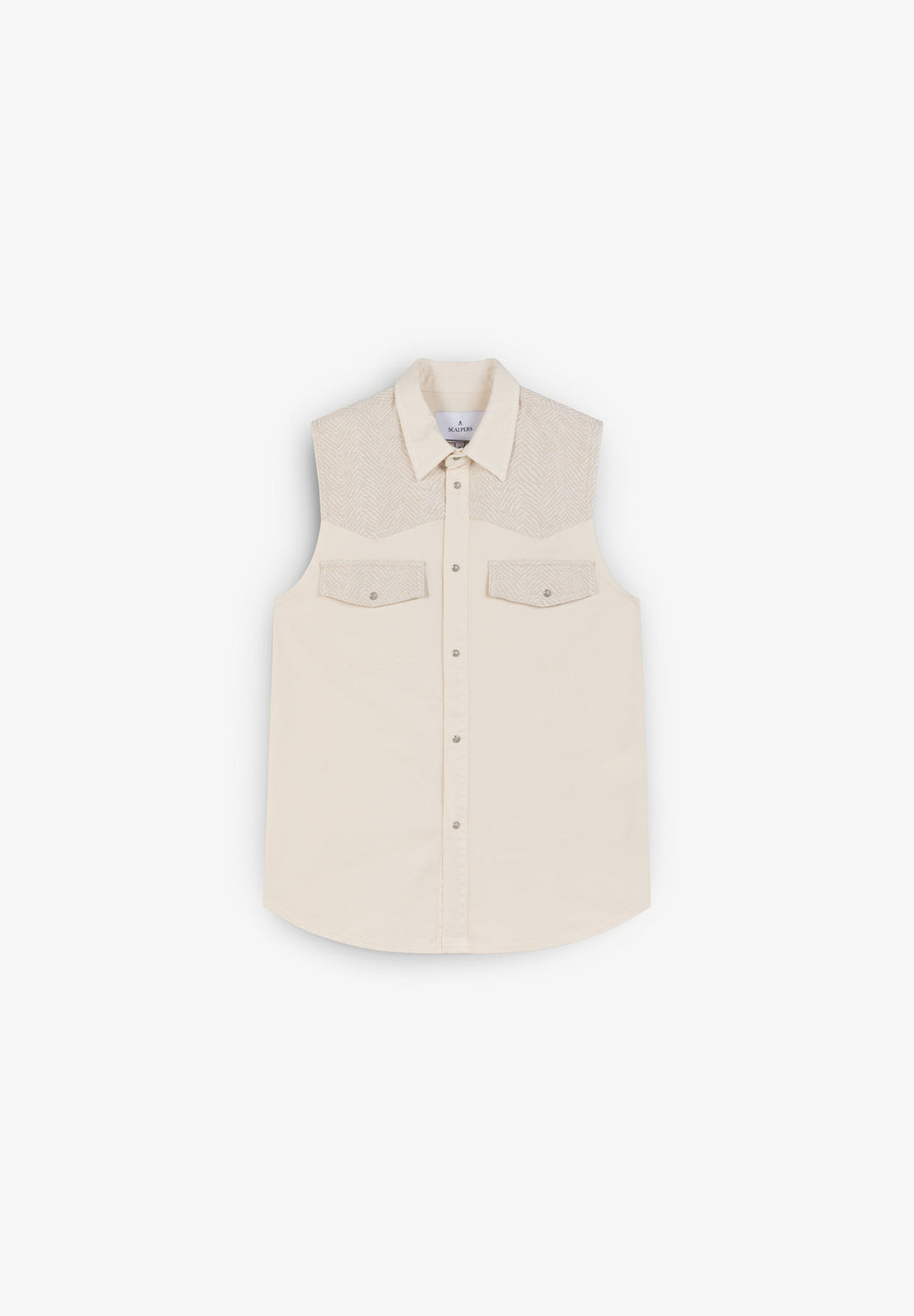 Chaleco con bolsillos a contraste. Confeccionado en mezcla de algodón ligeramente elástico. Corte Regular Fit. Cuello camisero. Cierre con botones. Manga en sisa. Bolsillos en pecho con tapeta a contraste y cierre de snap.