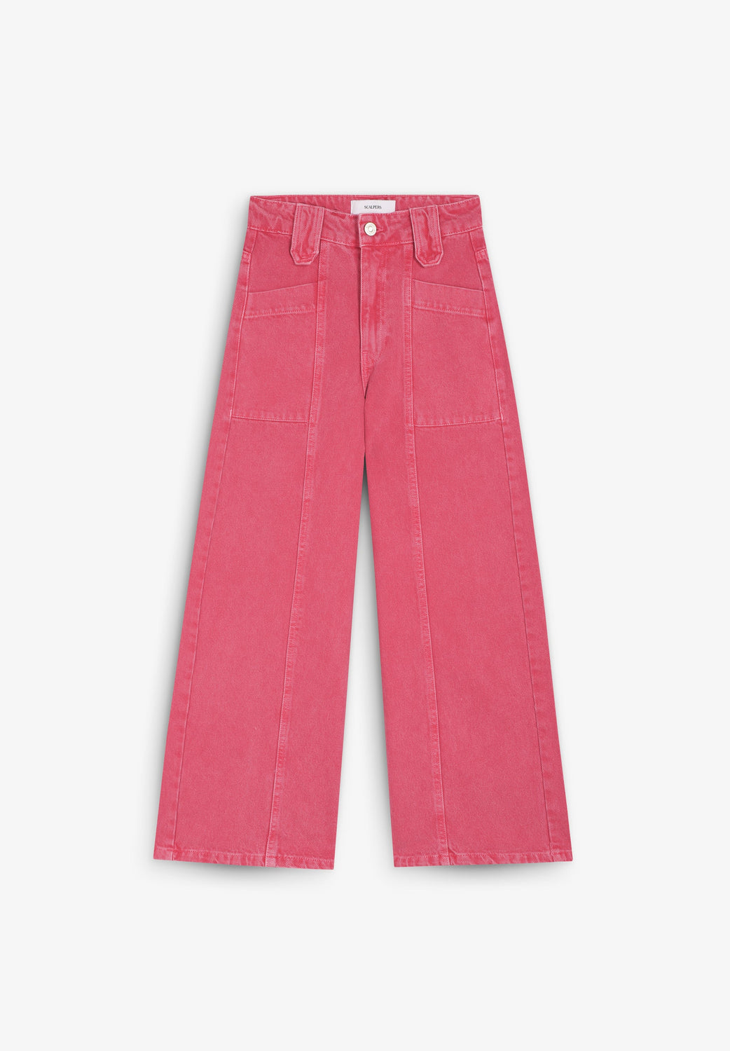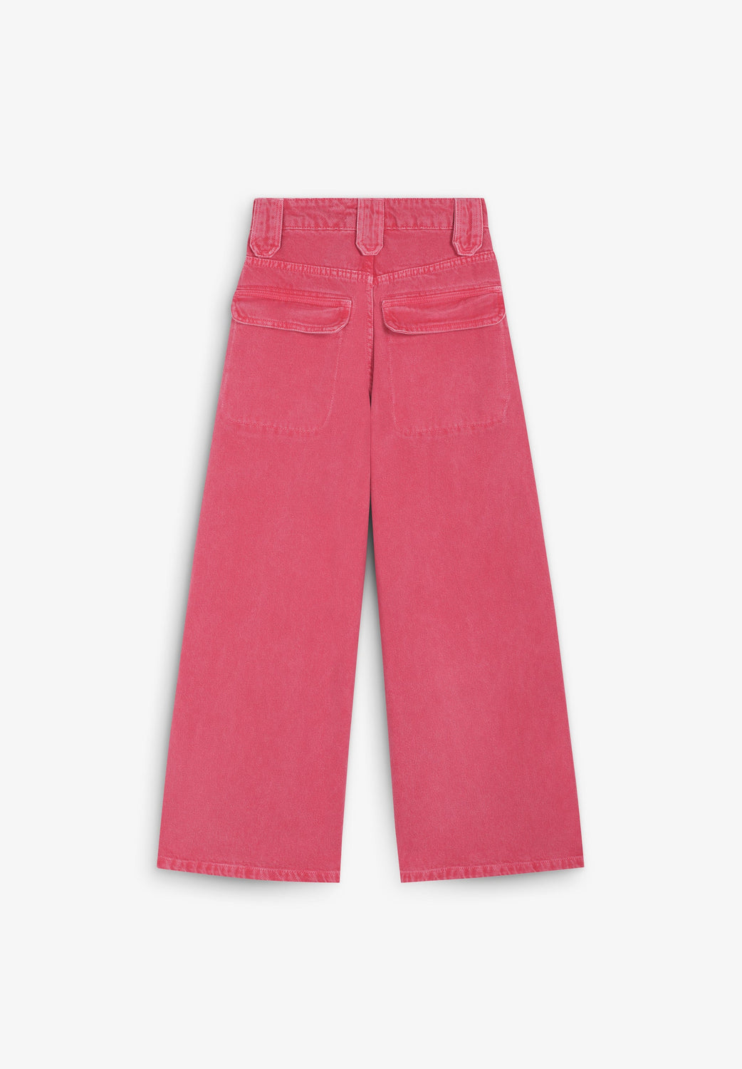 Pantalones Culotte confeccionados en 100% Algodón Orgánico BCI. Dos bolsillos frontales. Dos bolsillos posteriores con solapa. Detalle de costuras. Efecto lavado. Cierre por botón y cremallera en frontal.