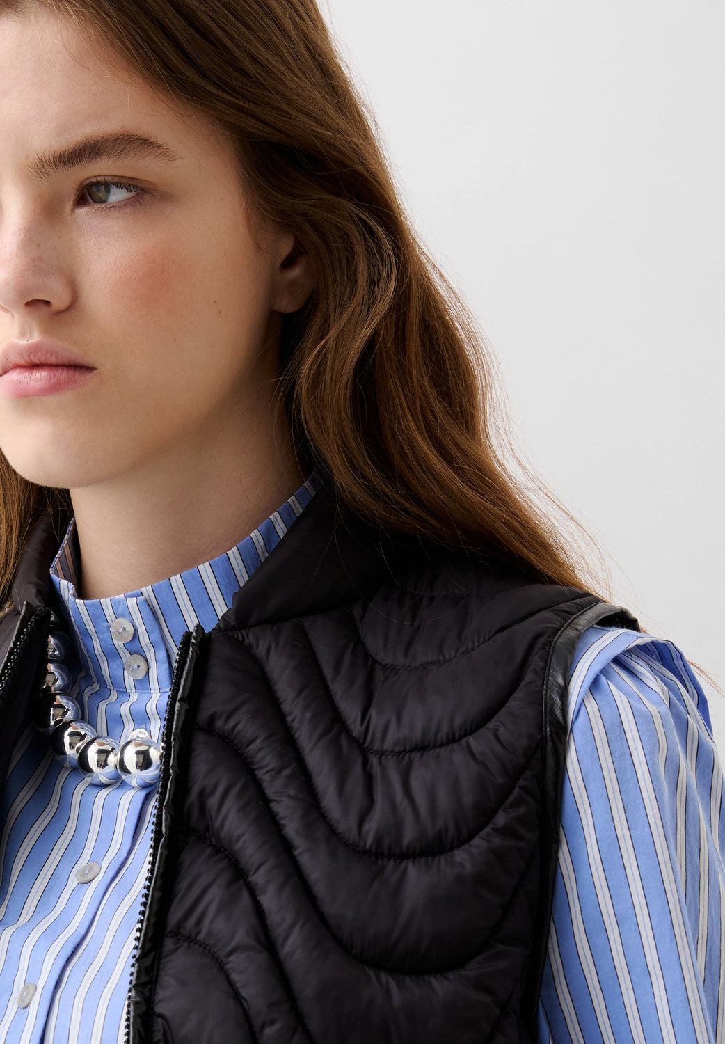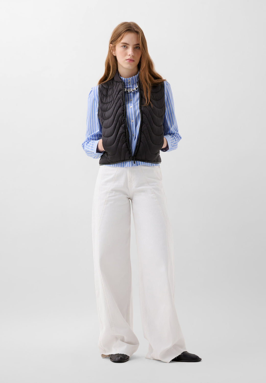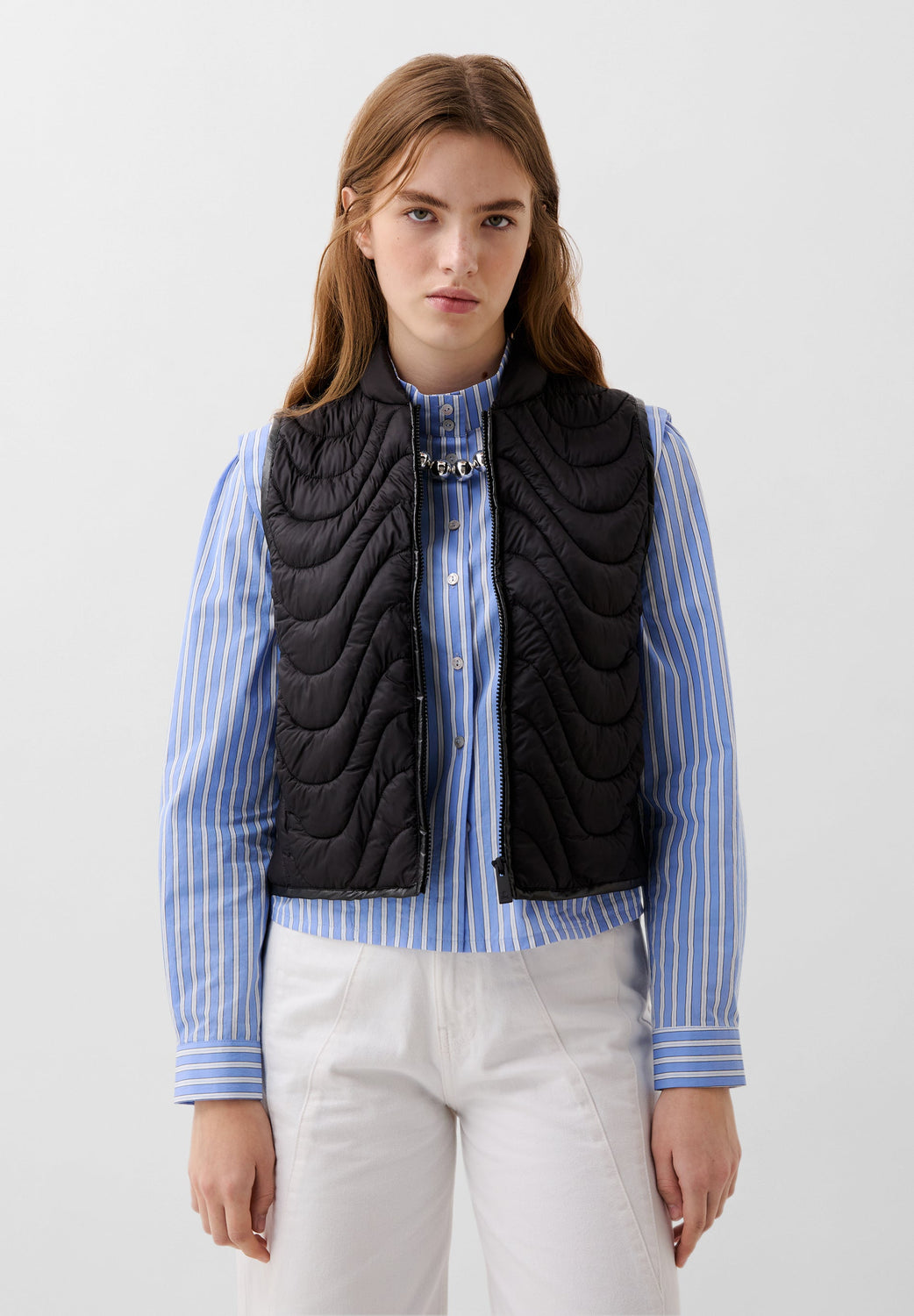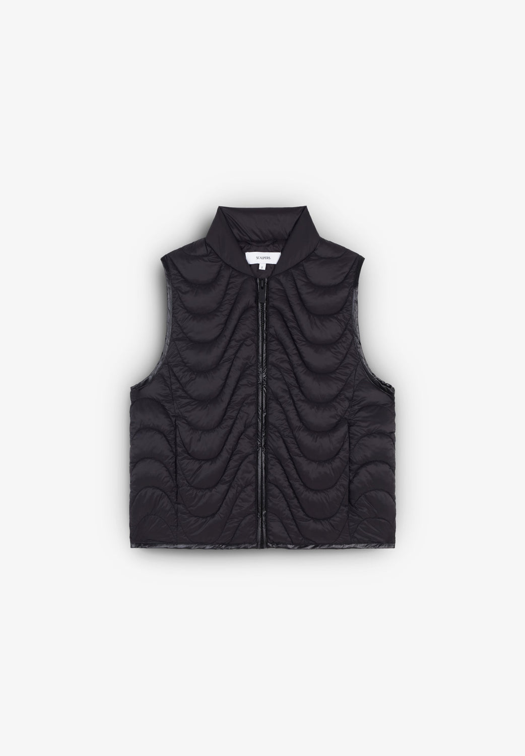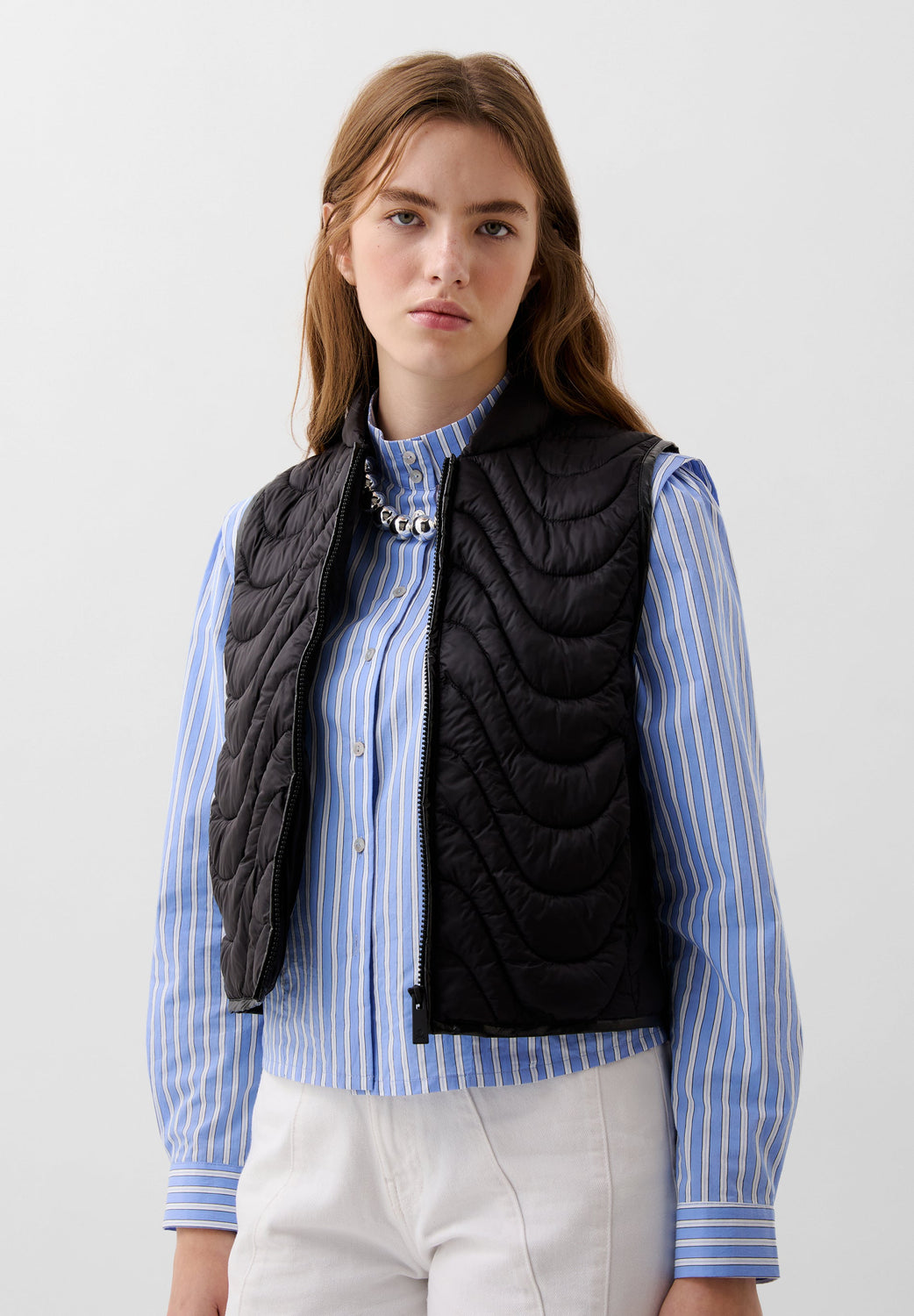 Chaleco acolchado confeccionado en tejido técnico. Slim fit, cuello subido y cierre con cremallera. Bolsillos laterales.