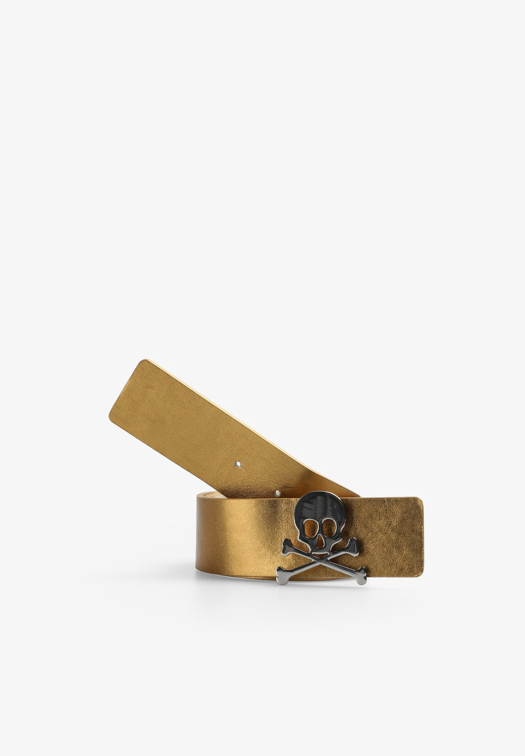 Cinturón reversible confeccionado en 100% piel. Detalle frontal de calavera metalizada a contraste.