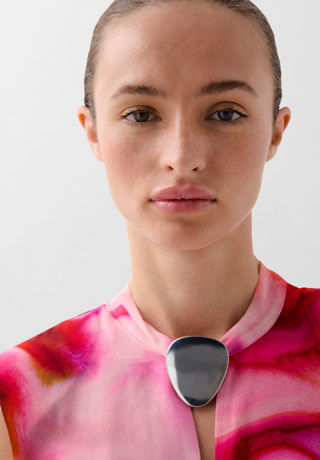 Vestido con print. Confeccionado en tejido fluido. Corte Slim Fit. Cuello redondo con detalle y abertura. Cierre con cremallera y lazada al cuello. Drapeado delantero en la falda con nudo en cintura.
