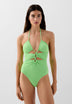 Bañador flúor. Cuello redondo. Tirantes finos. Detalle en frontal. Sin cierre. Forro interior.