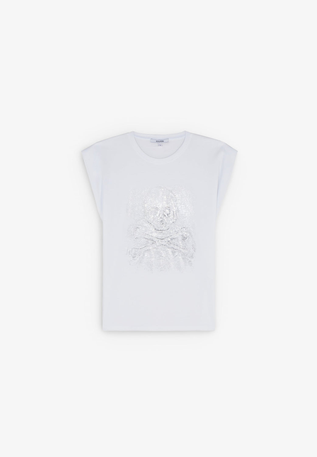 Camiseta confeccionada en 100% algodón. Corte regular fit, cuello redondo y manga en sisa con pliegues.