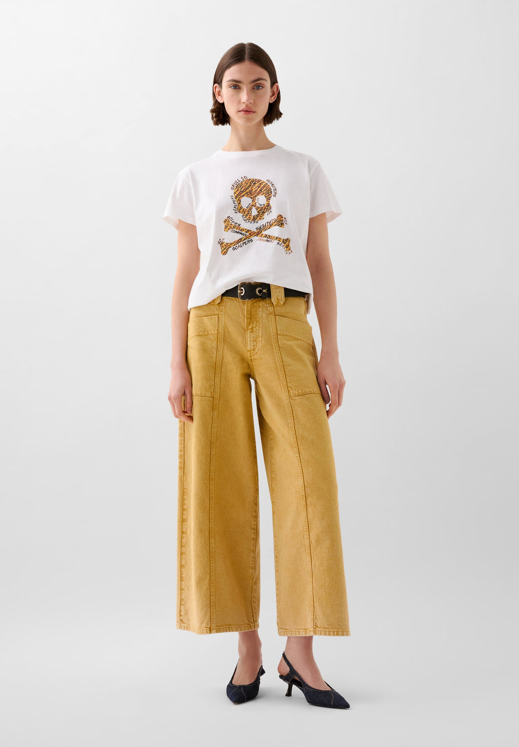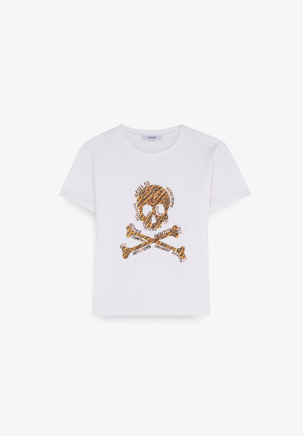 Camiseta confeccionada en 100% algodón. Regular fit, cuello redondo y manga corta. Print de calavera frontal con animal print.