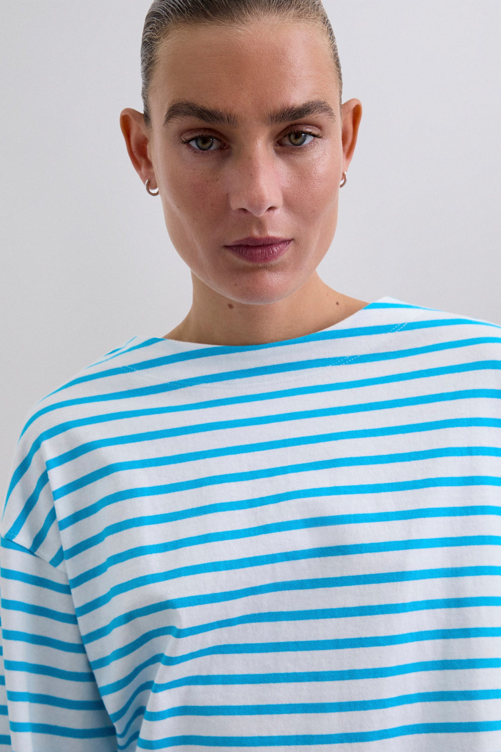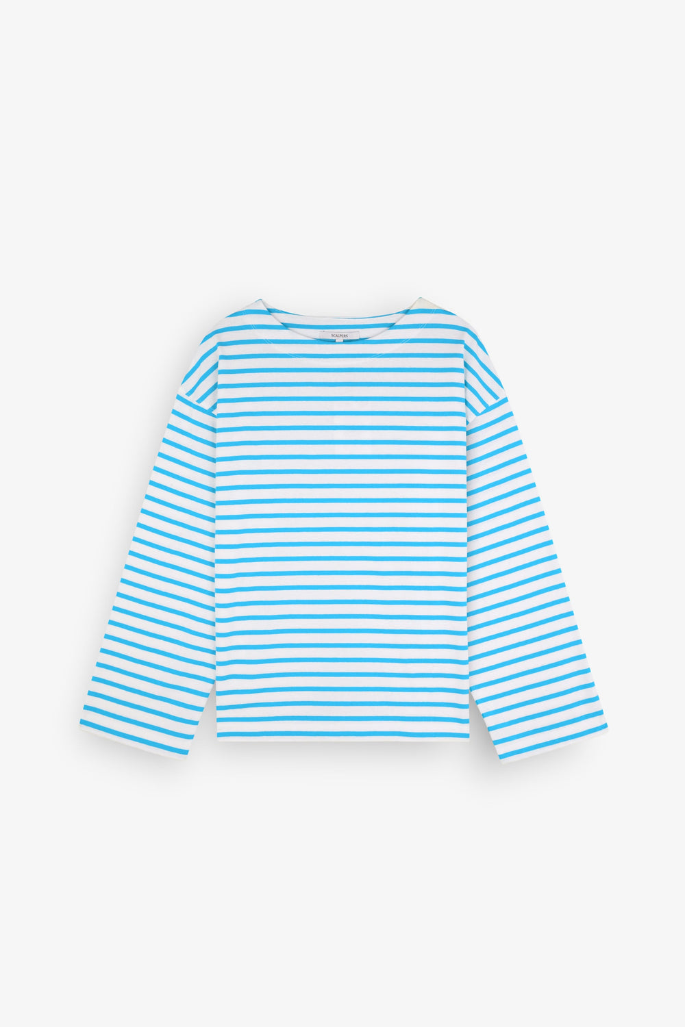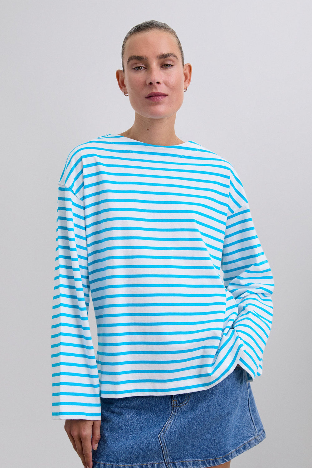 Camiseta confeccionada en algodón 100%. Corte ligeramente oversize, cuello redondo y manga larga con hombro caído. Detalle de etiqueta con logo trasera.