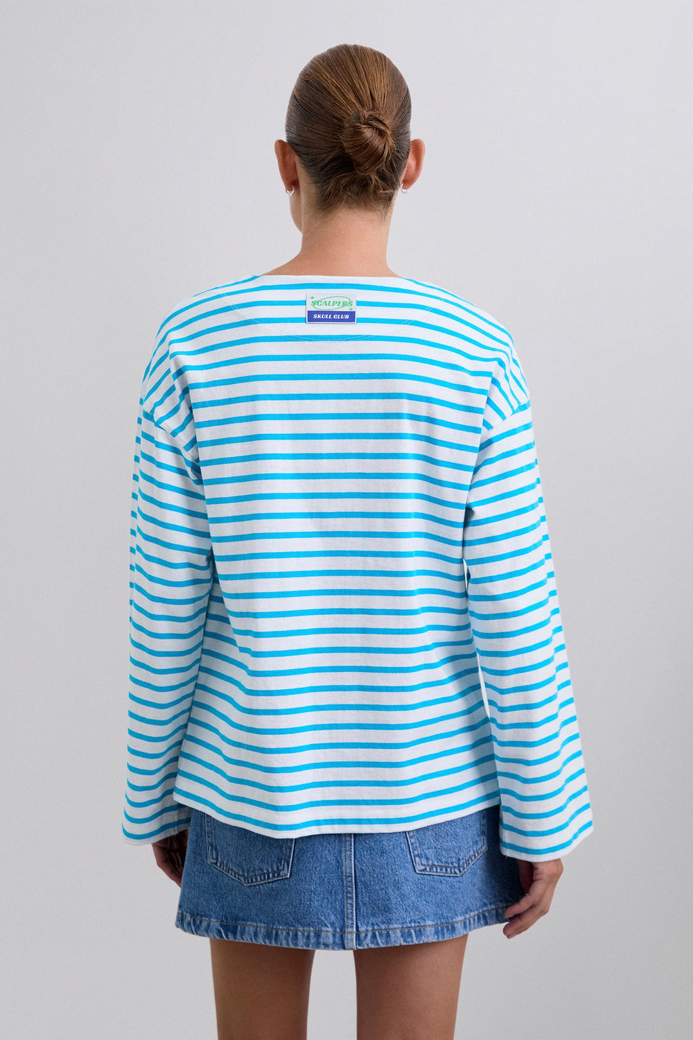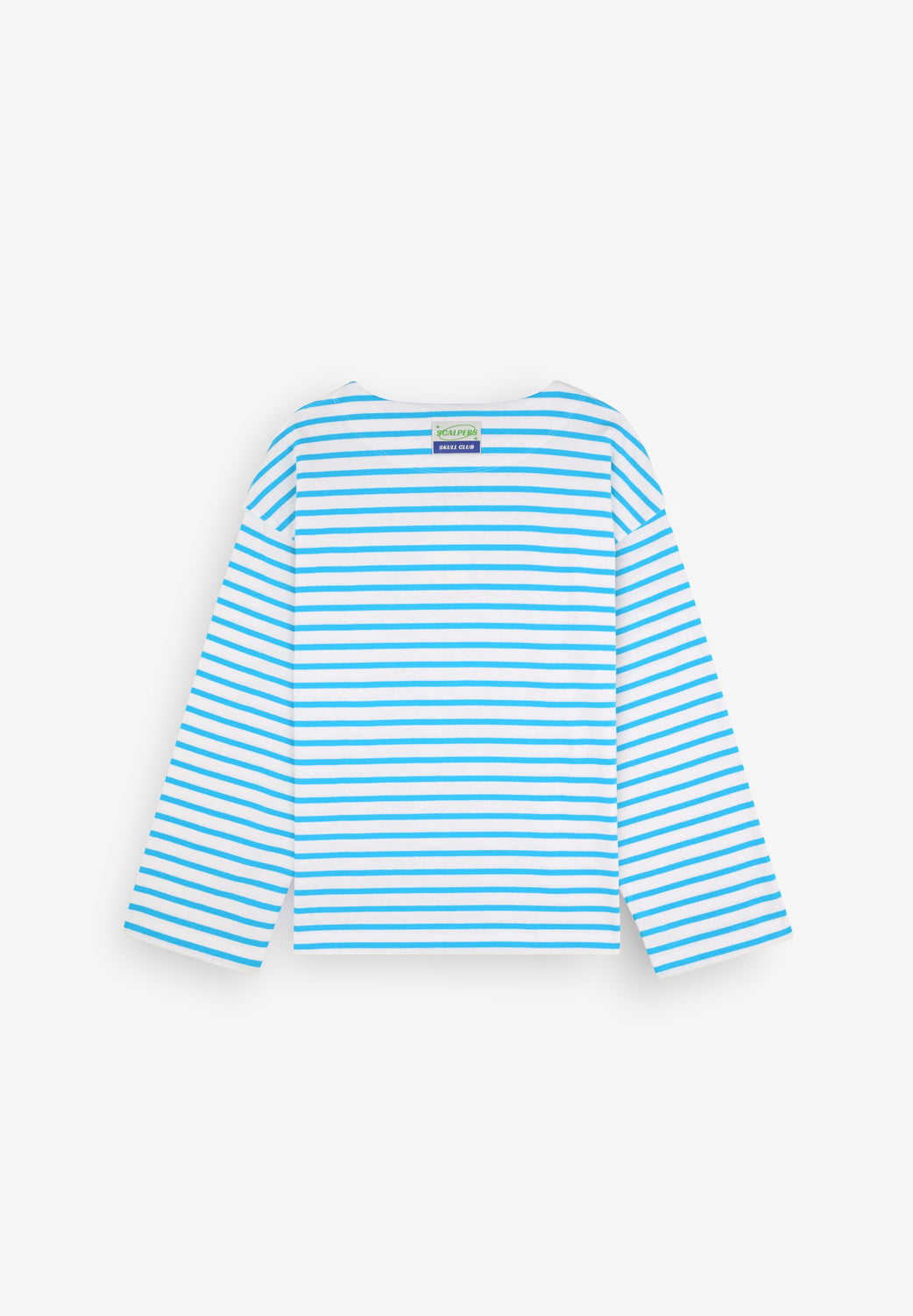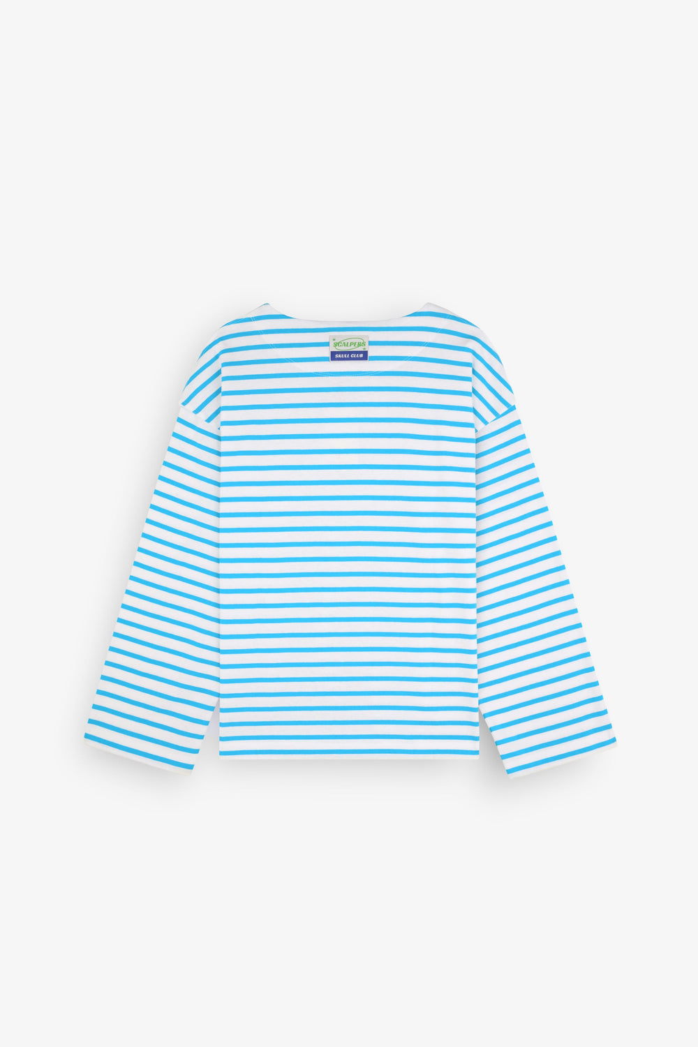 Camiseta confeccionada en algodón 100%. Corte ligeramente oversize, cuello redondo y manga larga con hombro caído. Detalle de etiqueta con logo trasera.