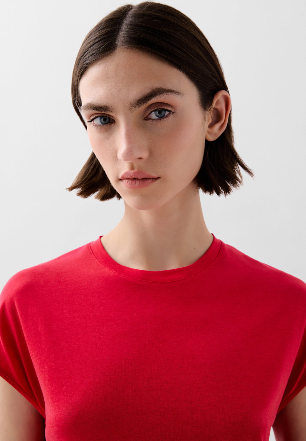 Camiseta con frunces laterales. Confeccionada en mezcla de algodón. Corte Regular fit. Cuello redondo. Manga en corta