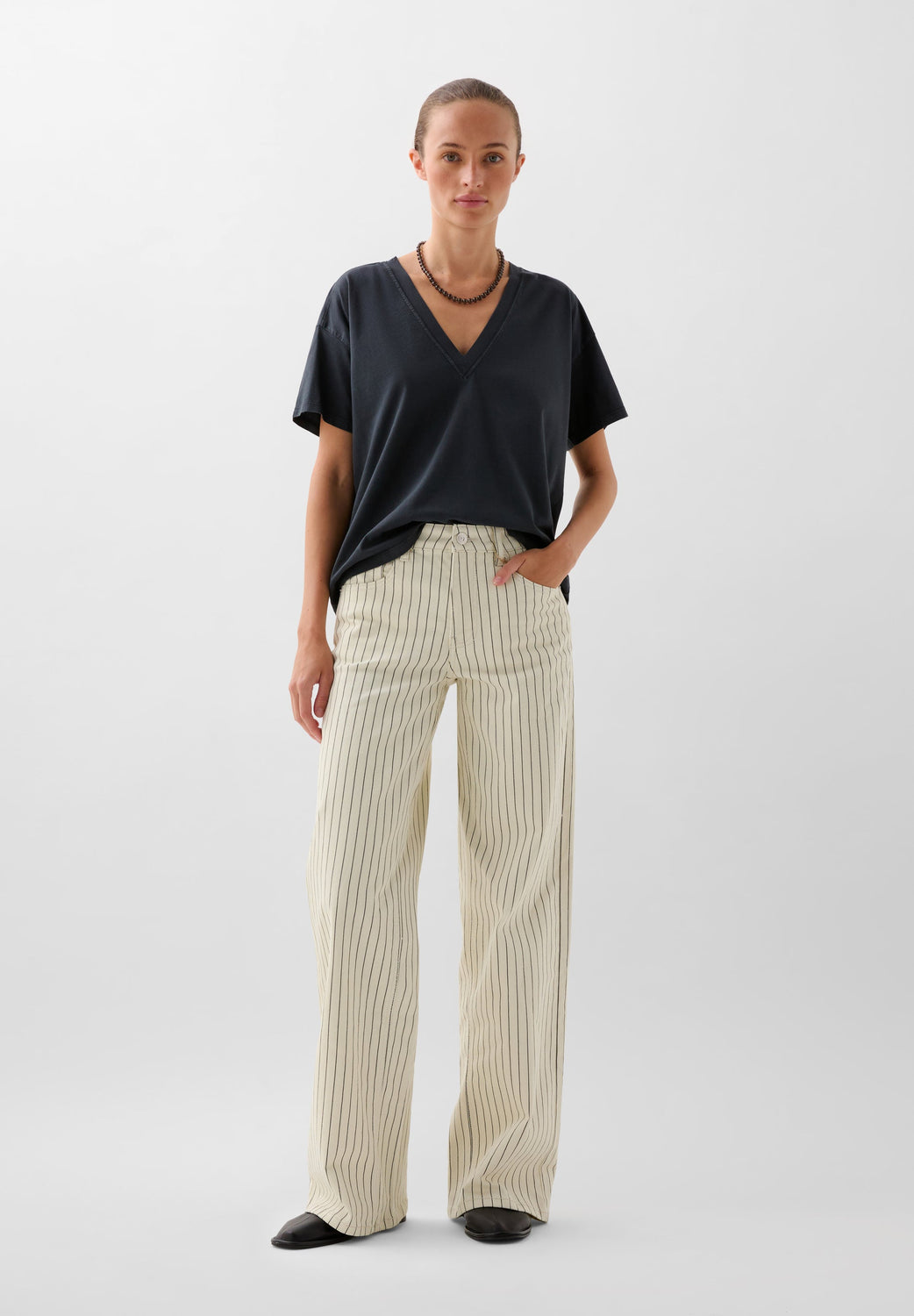 Camiseta básica confeccionada en algodón 100% BCI. Corte Regular Fit, cuello en V y manga corta.