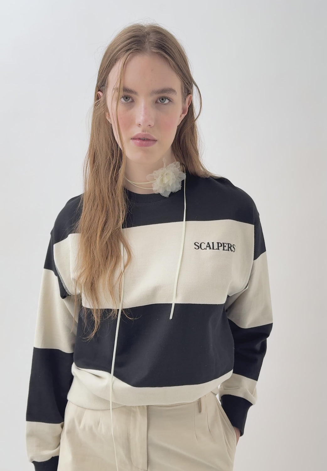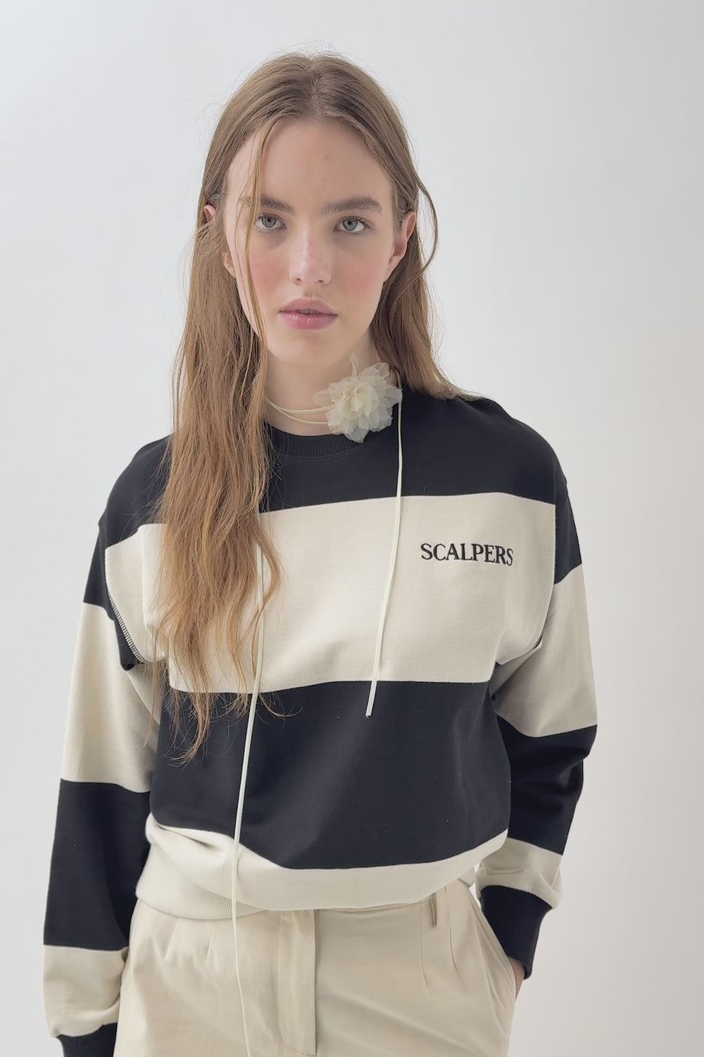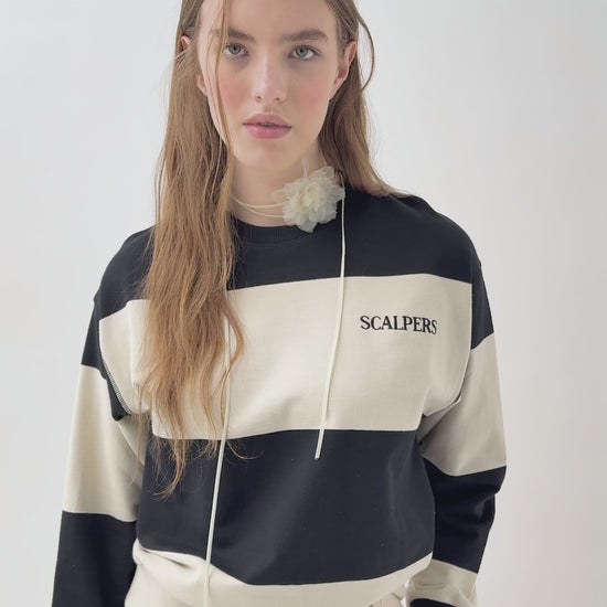 Sudadera de rayas confeccionada en 100% algodón. Regular fit, cuello redondo y manga larga. Logo bordado en pecho.