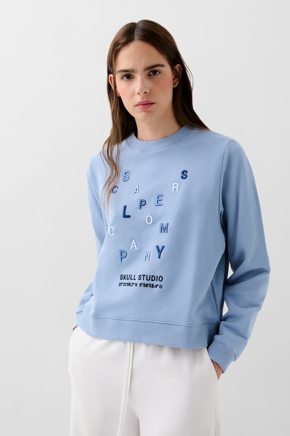 Sudadera confeccionada en 100% algodón BCI. Regular fit, cuello redondo y manga larga. Detalle de letras bordadas.